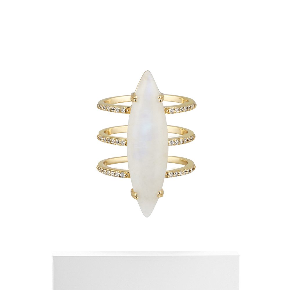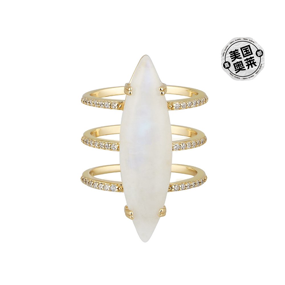 自营 Adornia 月光石侯爵戒指 14k 镀金纯银 - 白色 美国奥莱直发