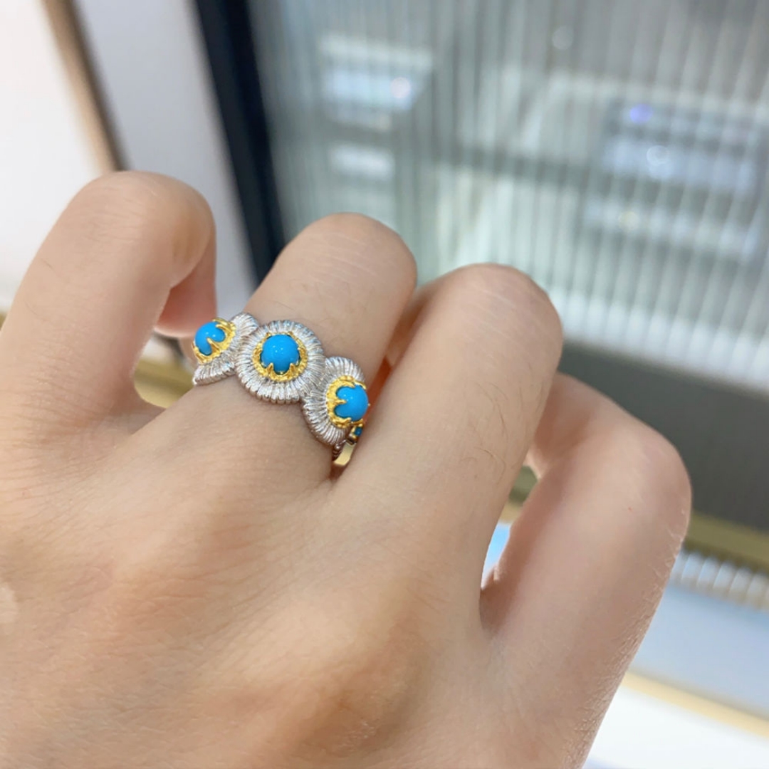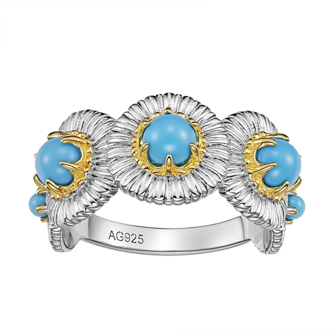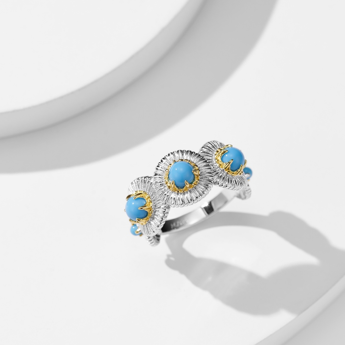 夏日度假风|布布风雏菊粉澳宝蓝松石戒指女925纯银时尚复古套装