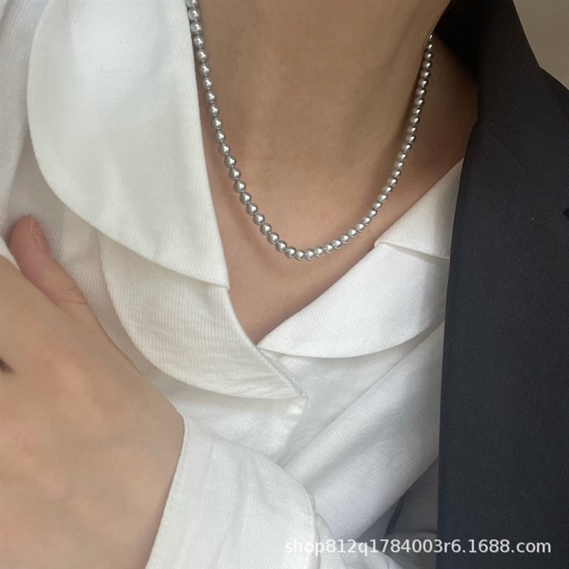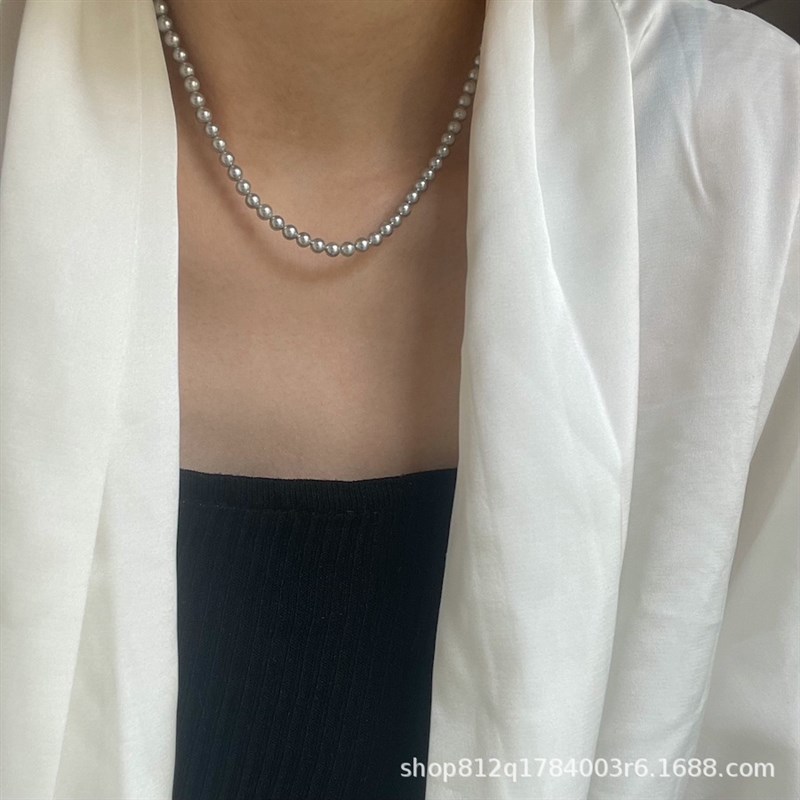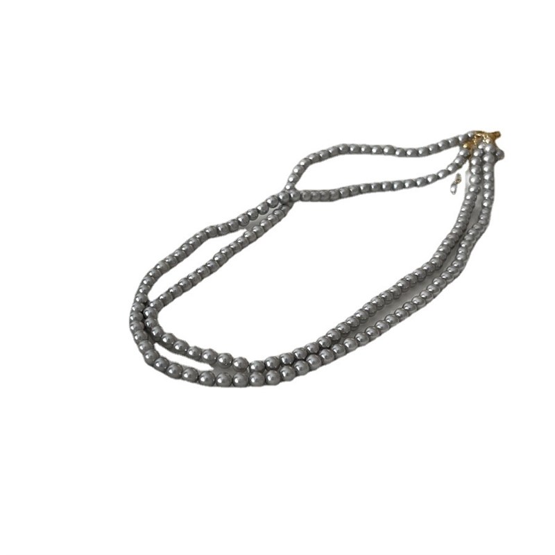 异彩清冷银灰色施家强光珍珠14k包金项链N小众轻奢气质复古锁骨