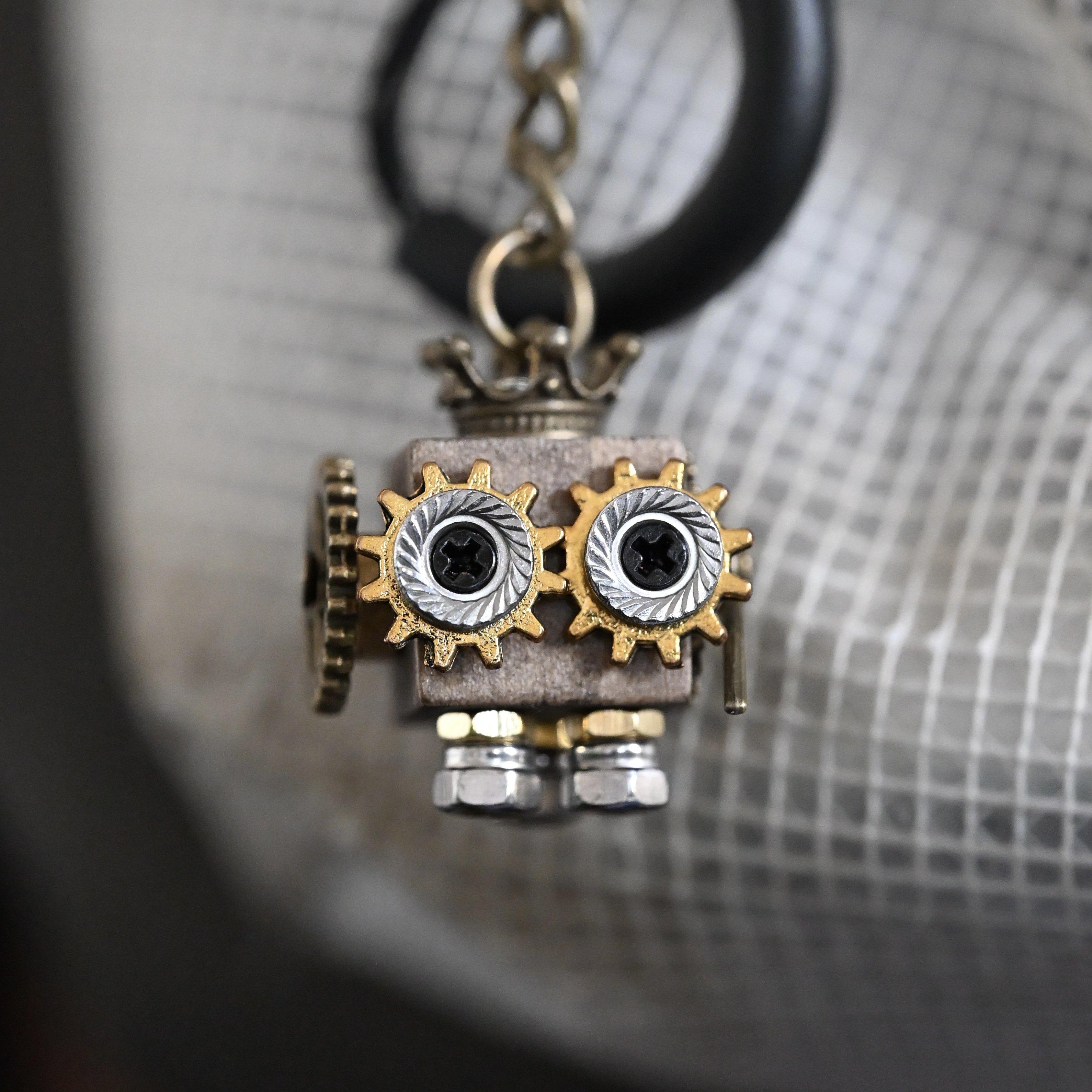 木质手工DIY可爱机械朋克机器人项链钥匙扣包包挂件创意礼物男女