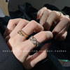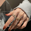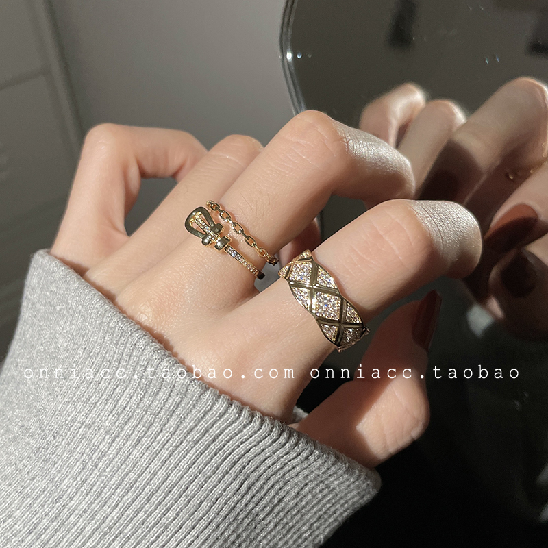 韩国水钻菱格纹钥匙扣马蹄戒指女食指开口时尚个性小众设计ins潮