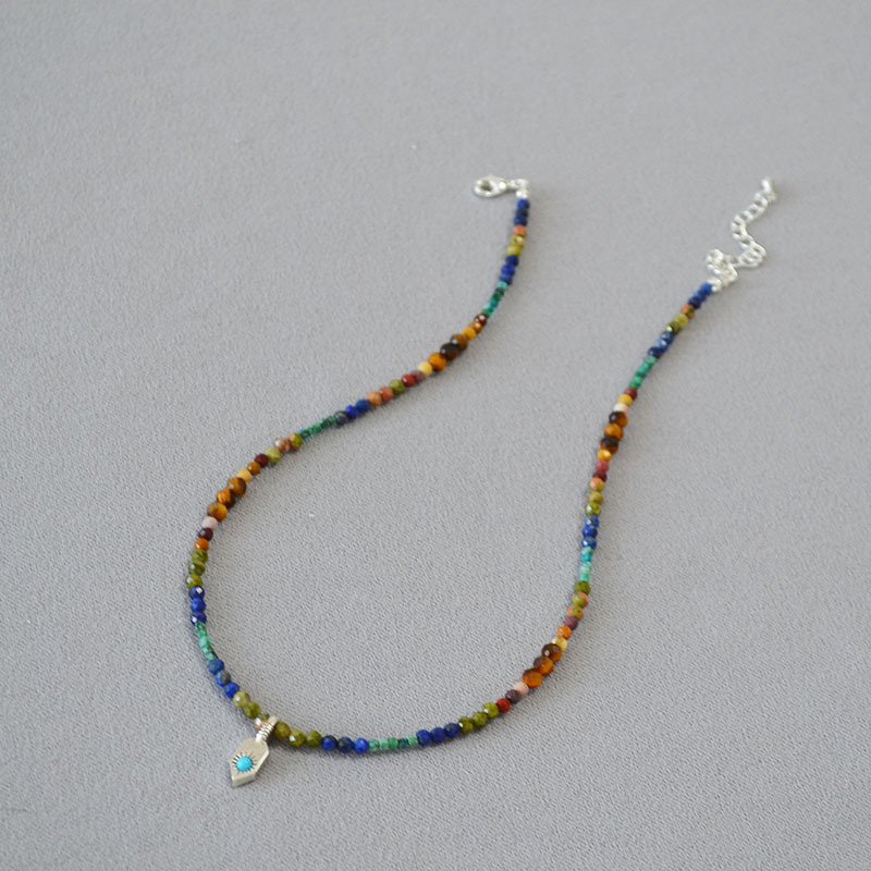 法式浪漫复古风文艺绿松石吊坠彩色多石串珠项链撞色百搭锁骨链女