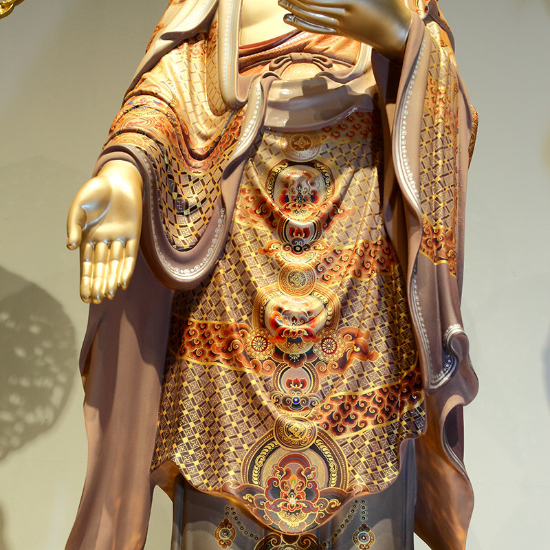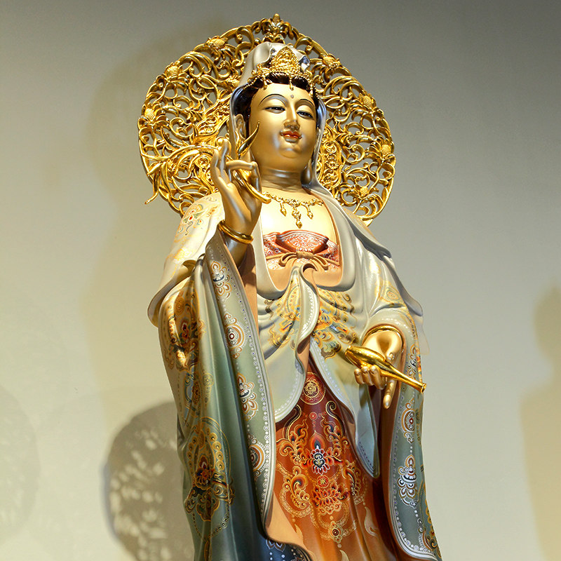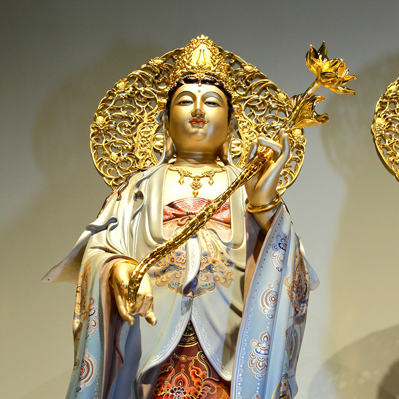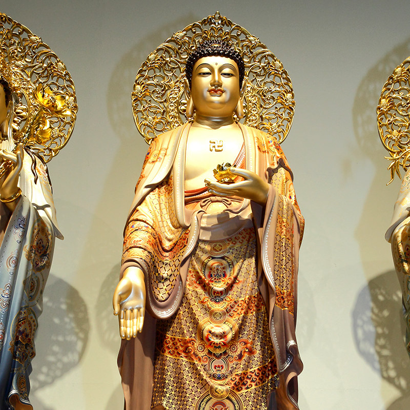 台湾纯铜贴金西方三圣神像铜雕手工彩绘观音佛像供奉阿弥陀佛站像