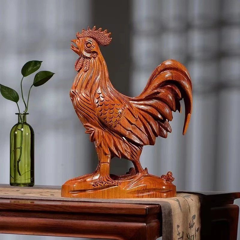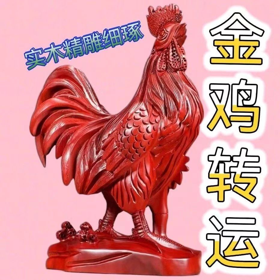 红花梨木雕鸡摆件根雕大公鸡十二生肖实木质雕刻家居装饰品工艺品