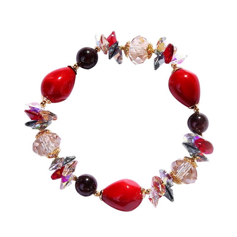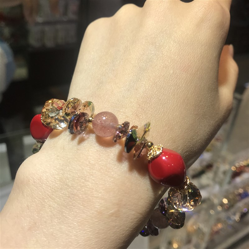 本命年天然水晶石榴石手链女红枣贝珠手串定制气质女友生日礼物