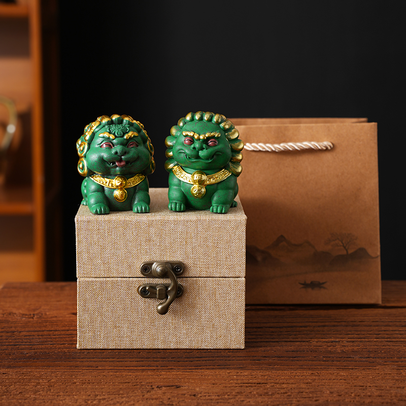 新中式国潮风石狮子风狮爷桌面吉祥物茶宠摆件创意盆栽鱼缸装饰