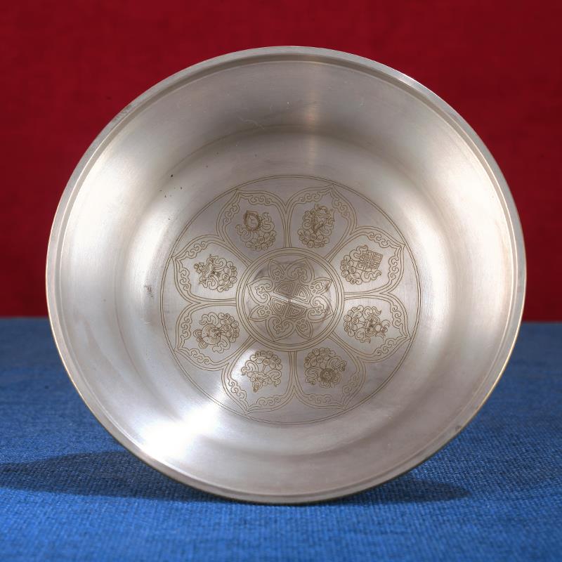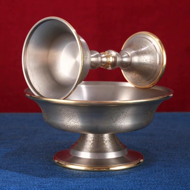藏式纯铜光面护法杯摆件平纹八吉祥雕花佛前客厅装饰供护法杯供具