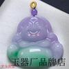 高端春带彩翡翠色冰种紫罗兰佛公吊坠弥勒佛挂件飘绿笑佛大小玉坠