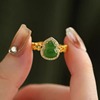 2026年仿和田碧玉葫芦戒指女福禄金色新中式国风翡翠祖母绿色指环