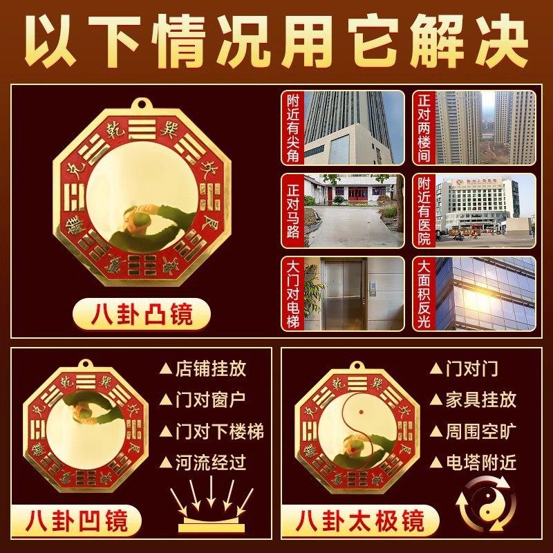 【正品】铜镜八卦凸镜凹镜太极家用窗户凹镜朱砂八卦挂件凸镜九宫