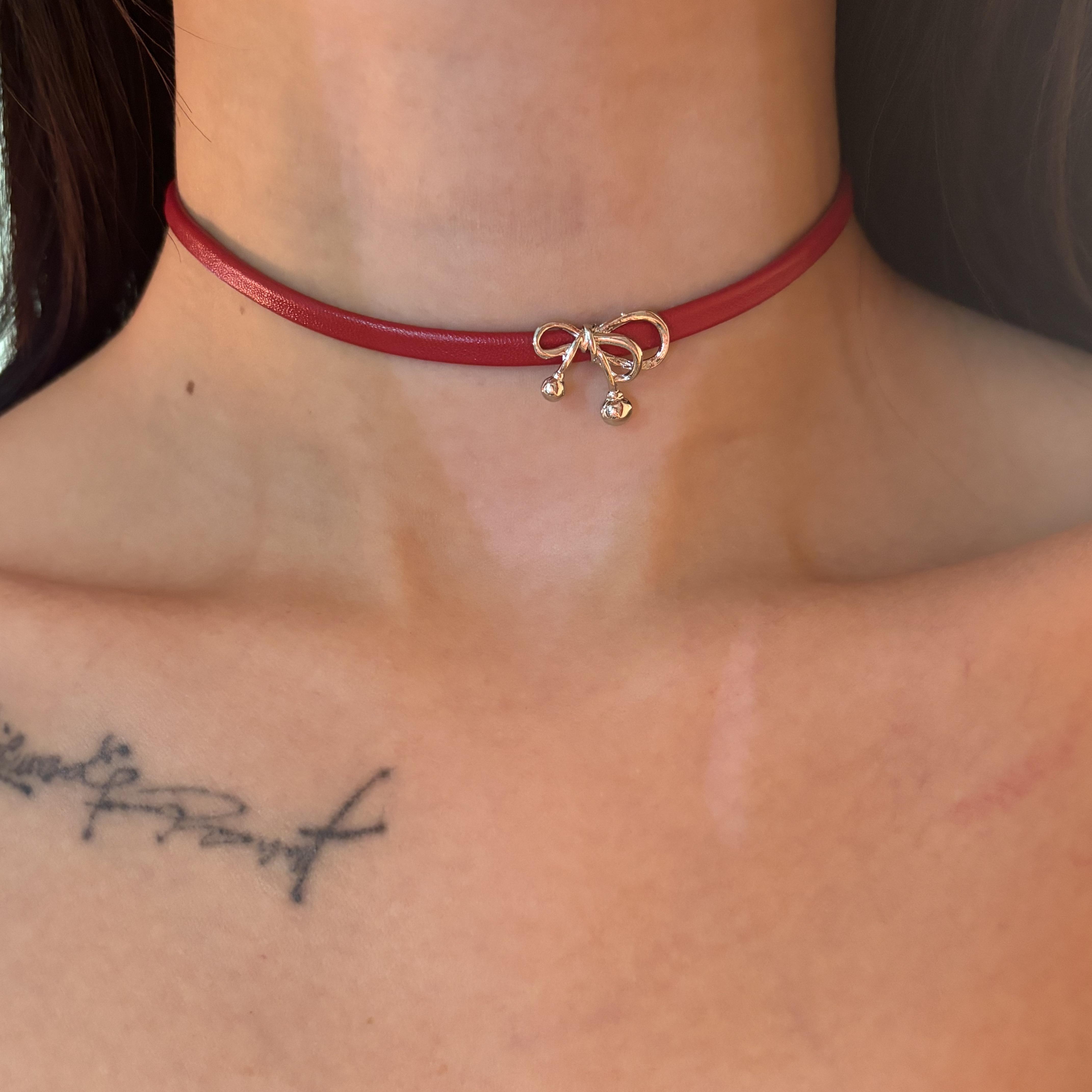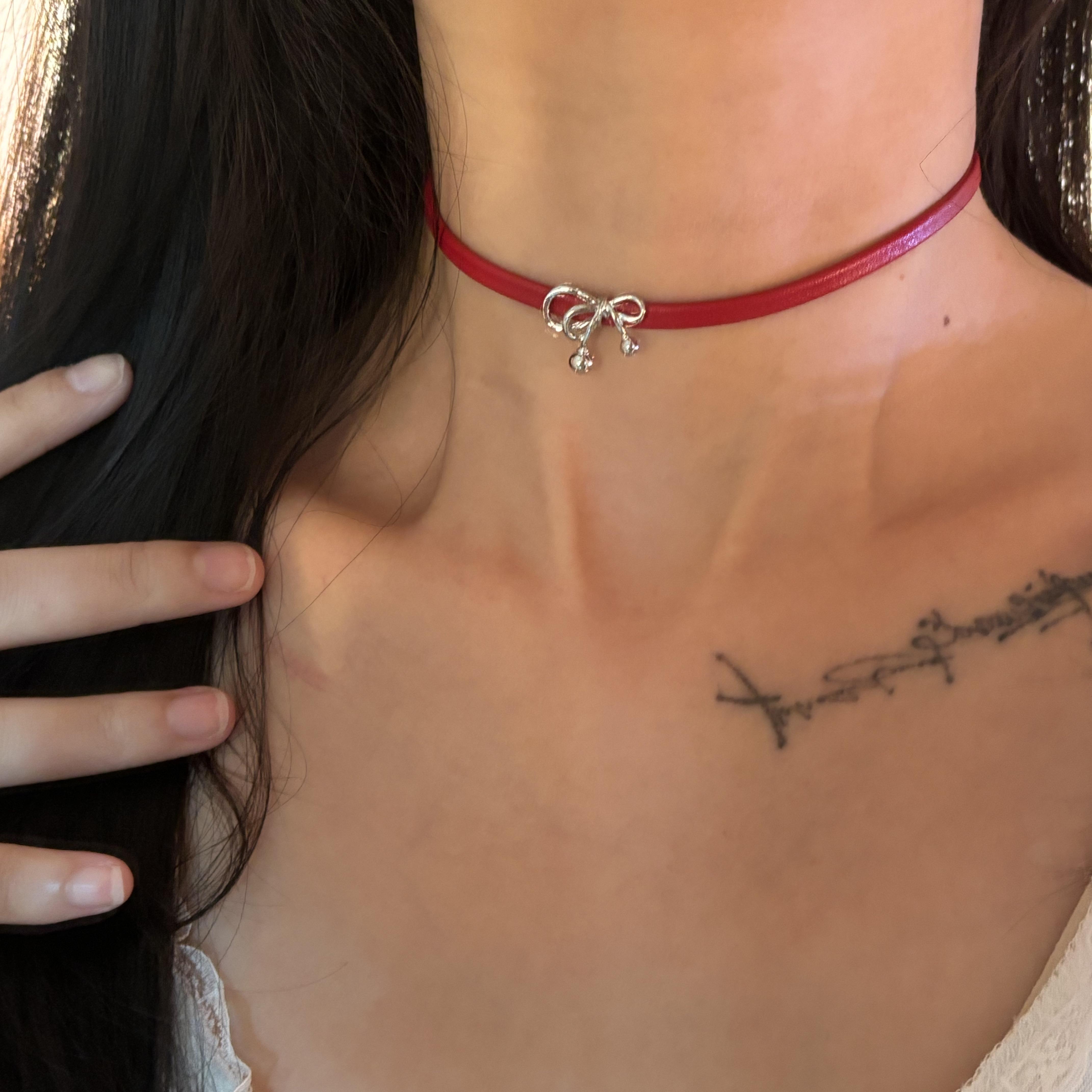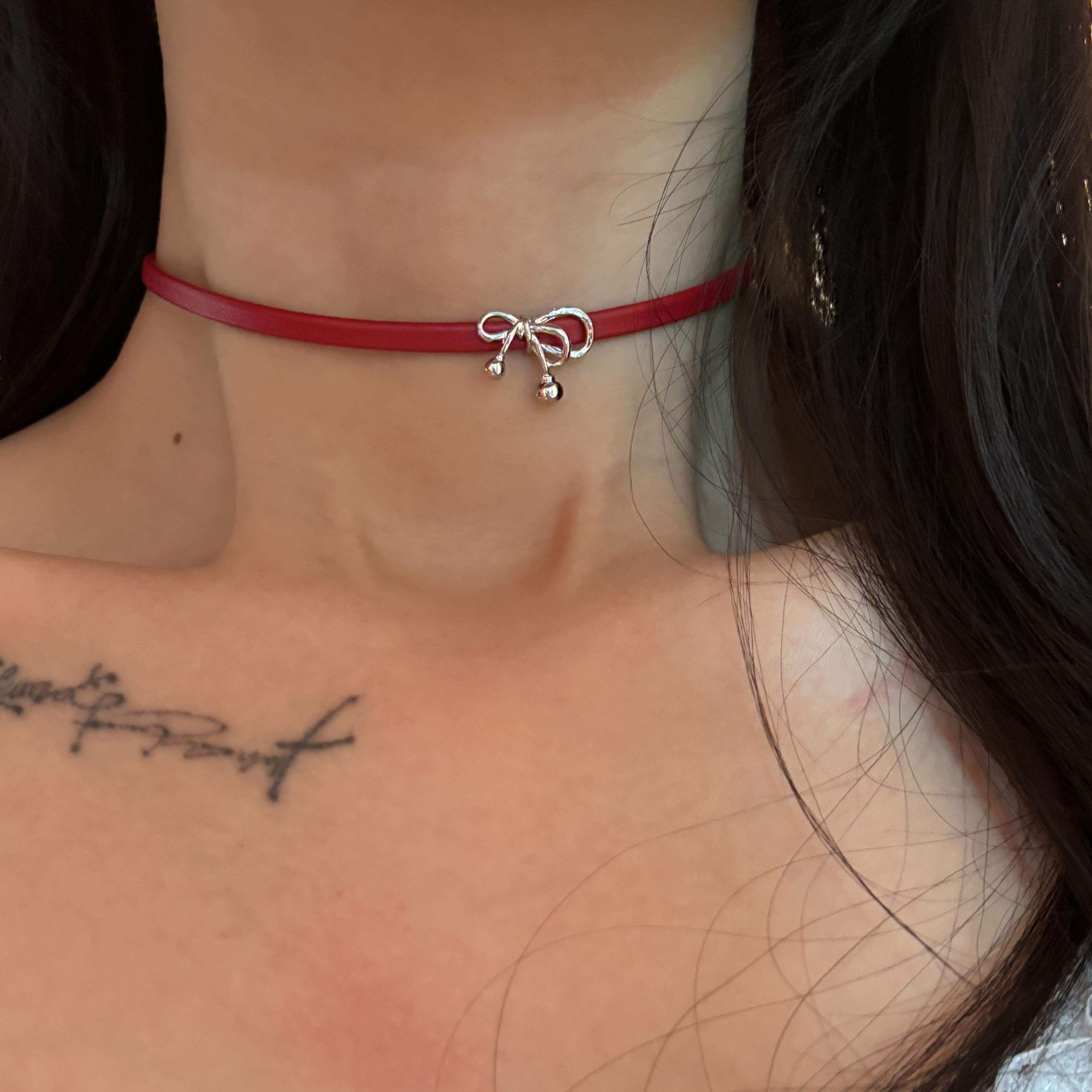 [楼哈哈]红色纯欲感颈链choker短款项圈甜酷皮质日常百搭锁骨链新