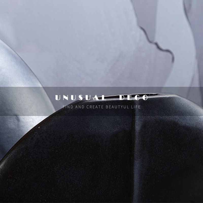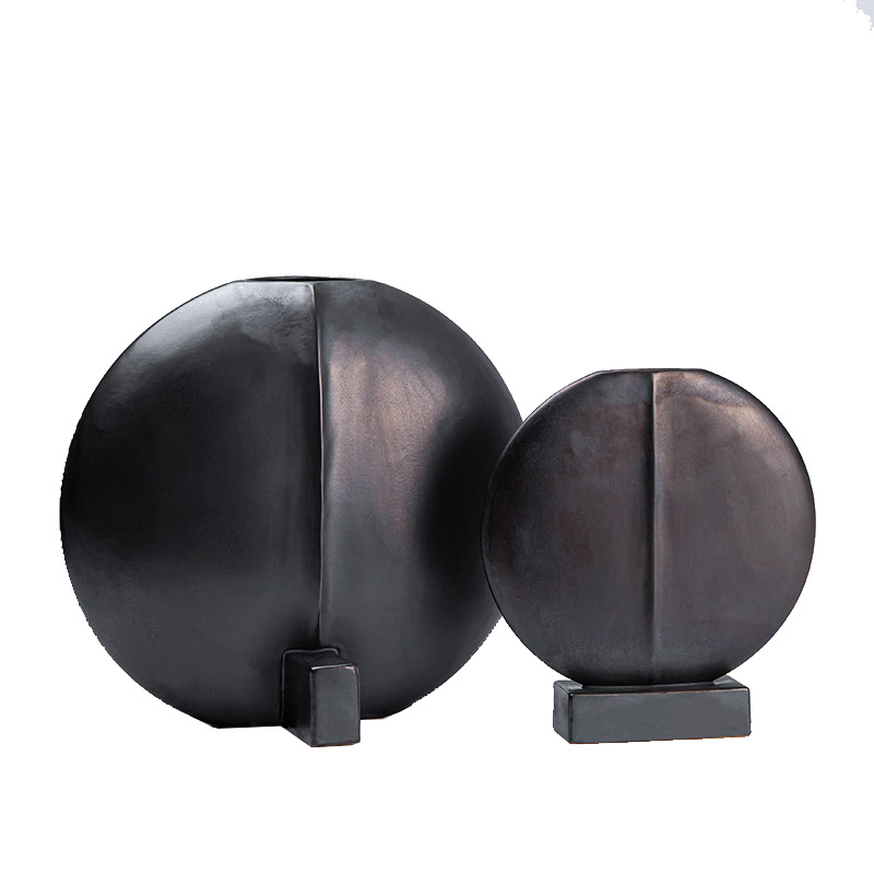 新中式极简现代黑色圆扁形v花器客厅餐桌创意花插样板间桌面摆件