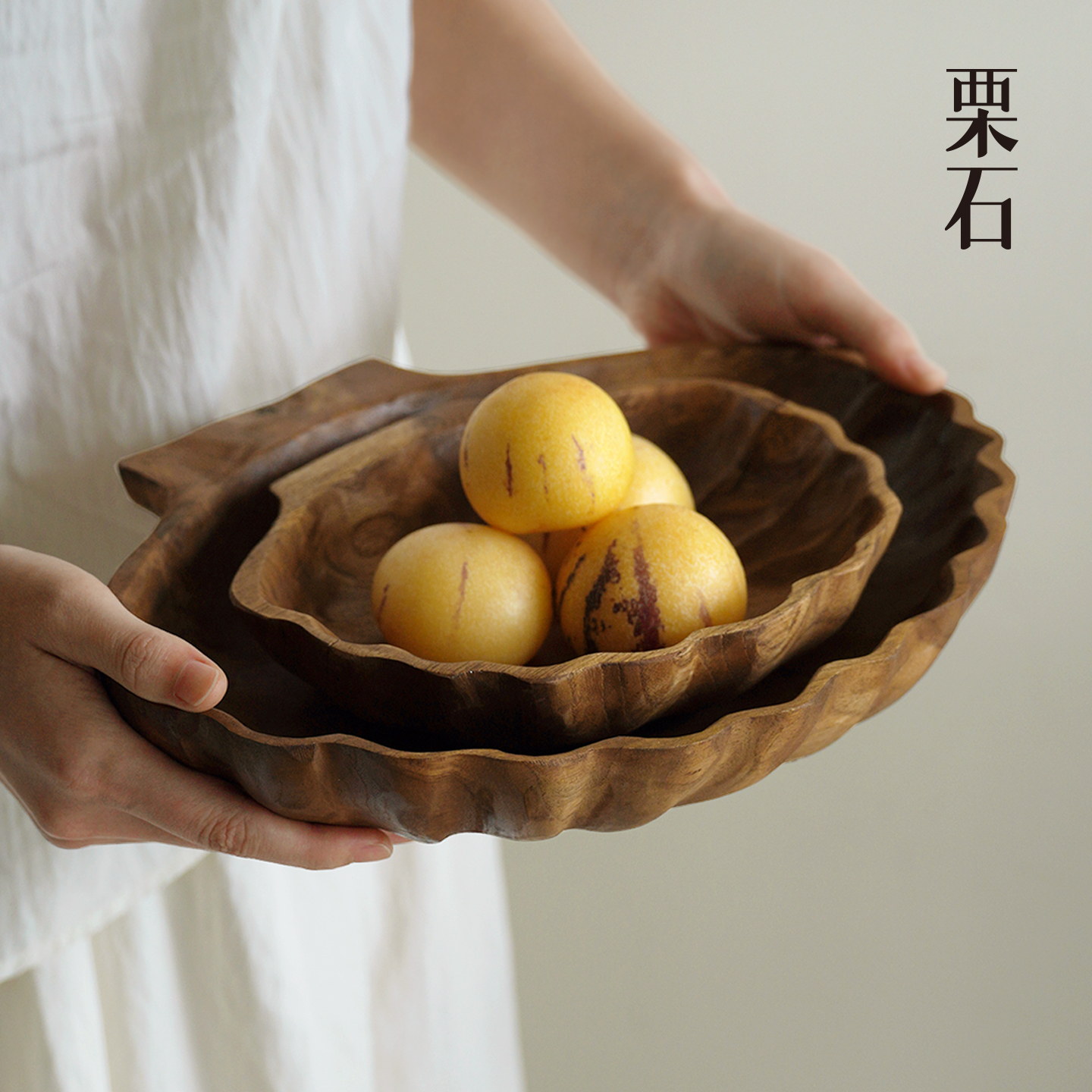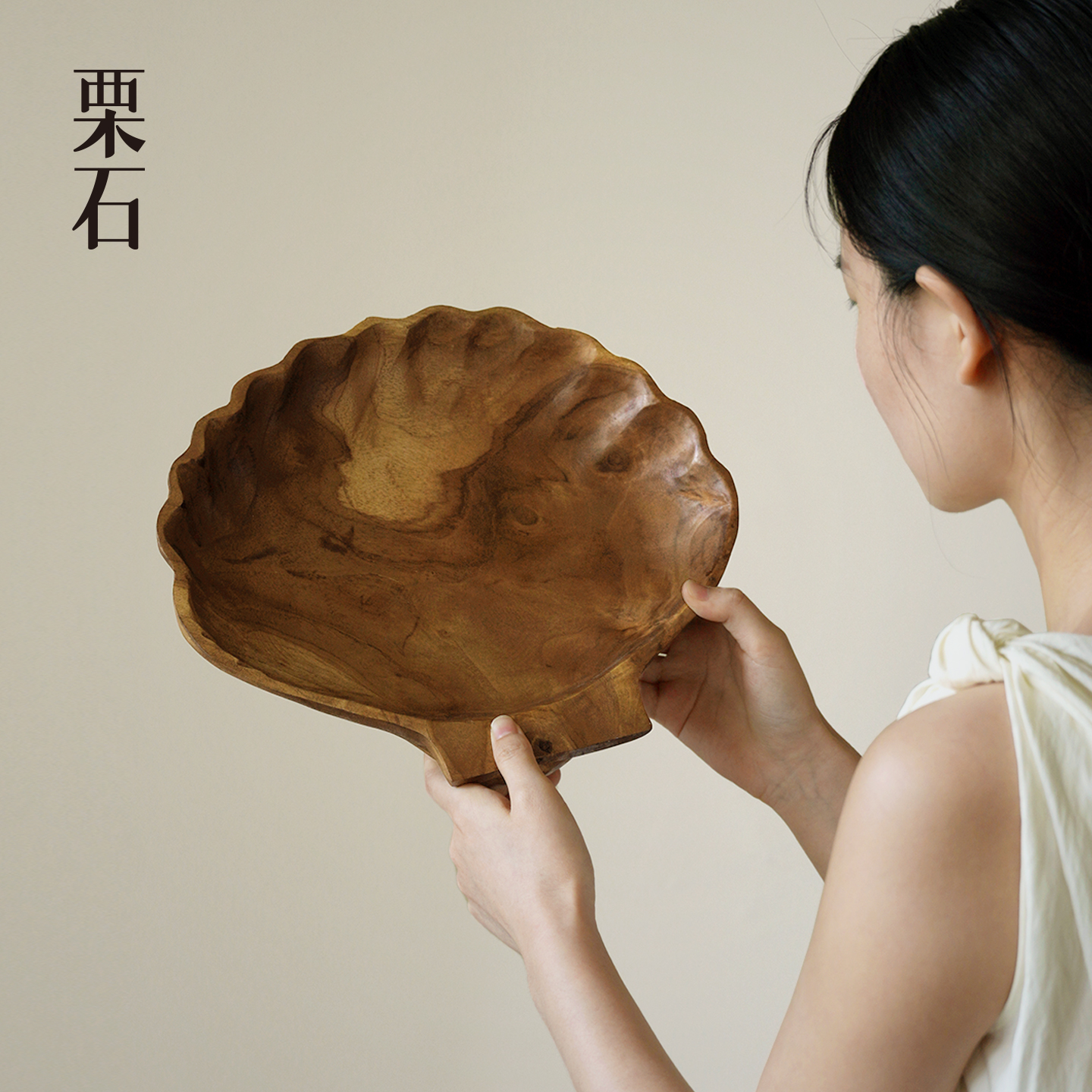 栗石侘寂风手作柚木托盘家用茶几果盘新中式实木玄关钥匙收纳摆件