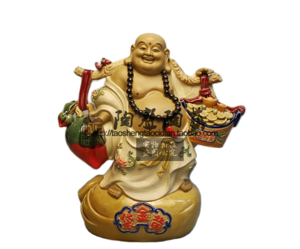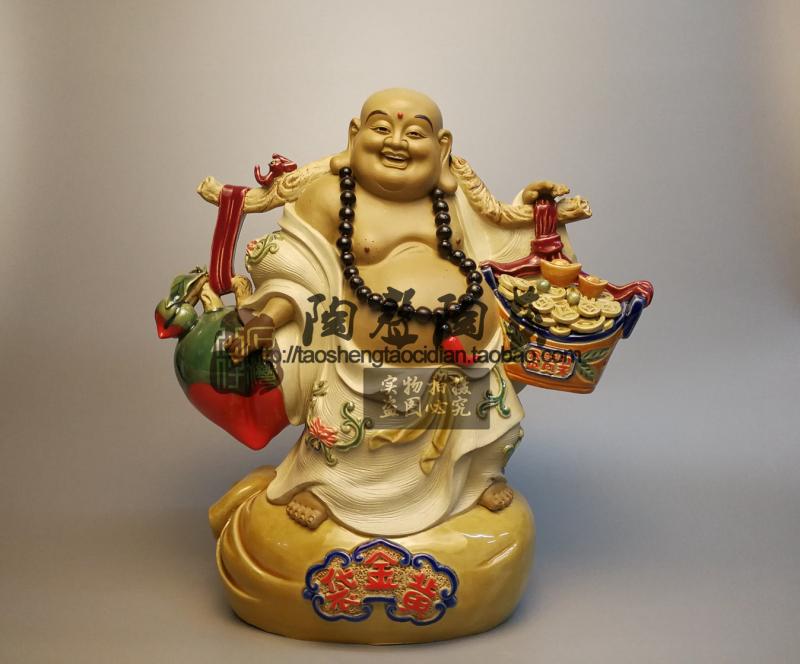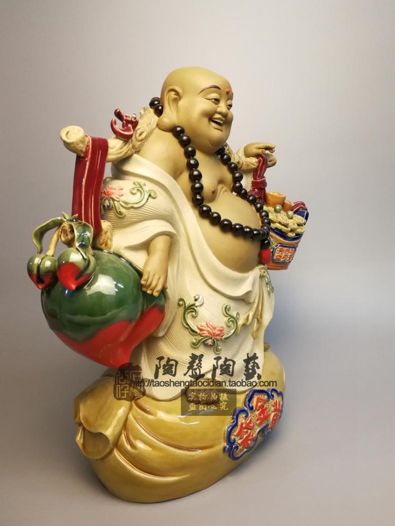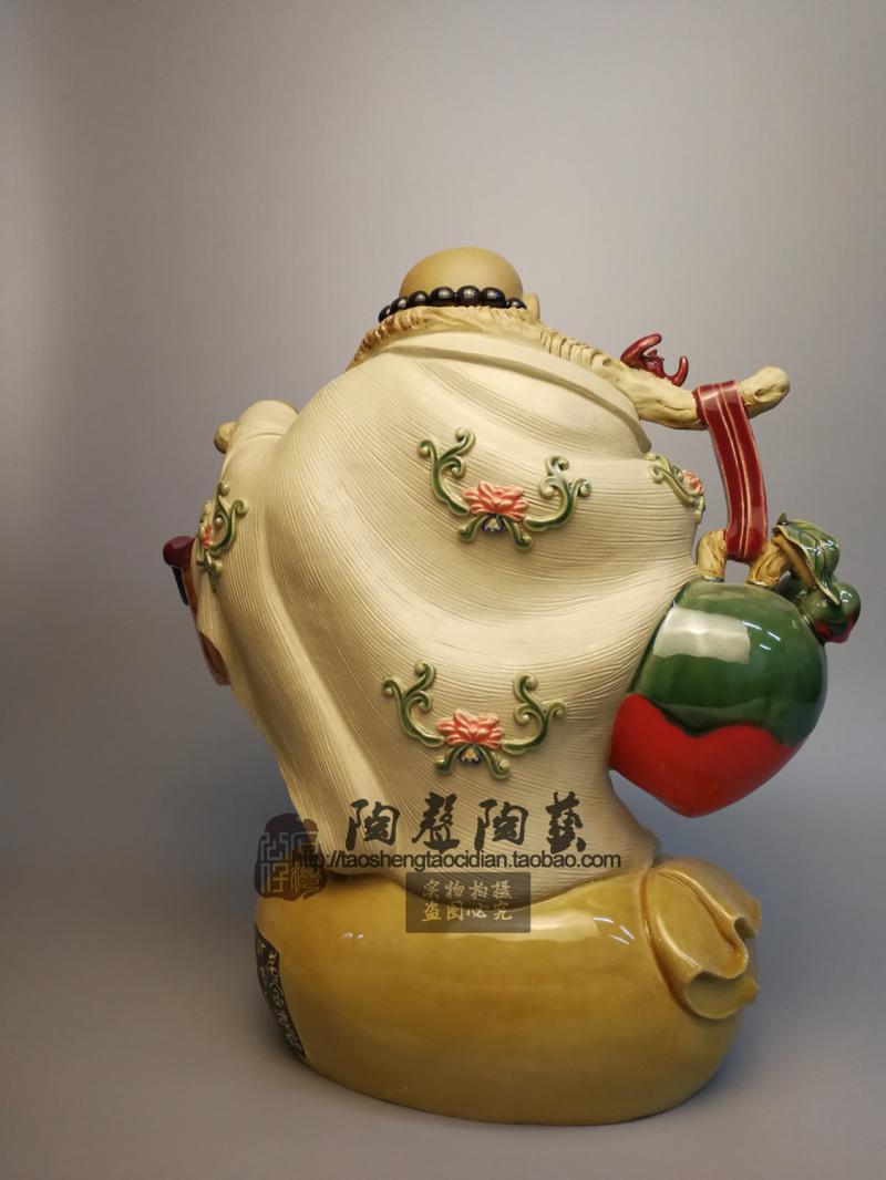 陶声推荐 聚宝布袋弥勒笑佛像石湾陶瓷公仔精品抬案摆件实拍
