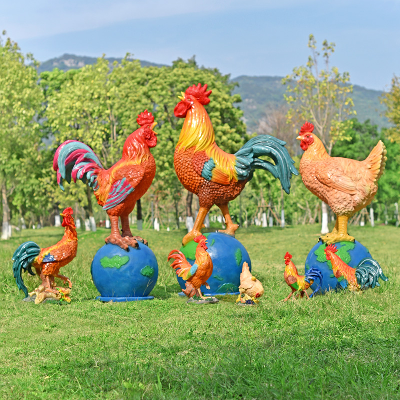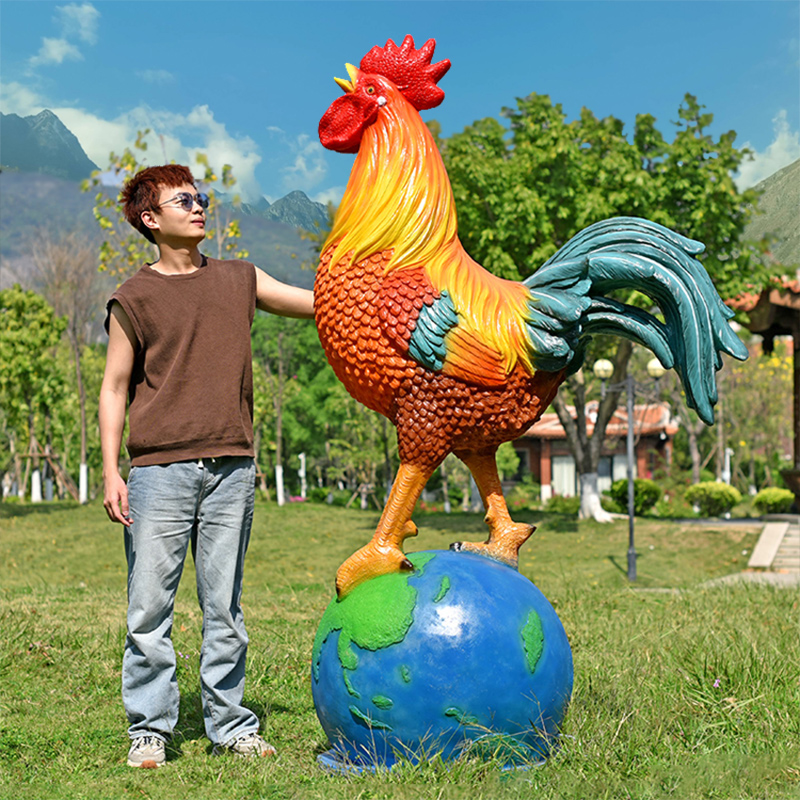 仿真网红发光大公鸡雕塑户外园林景观装饰庭院农庄炒鸡店迎宾摆件
