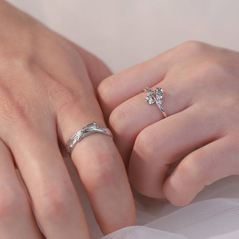原创阿宝S999足银三生有杏情侣对戒气质清新情人节送礼手饰代发
