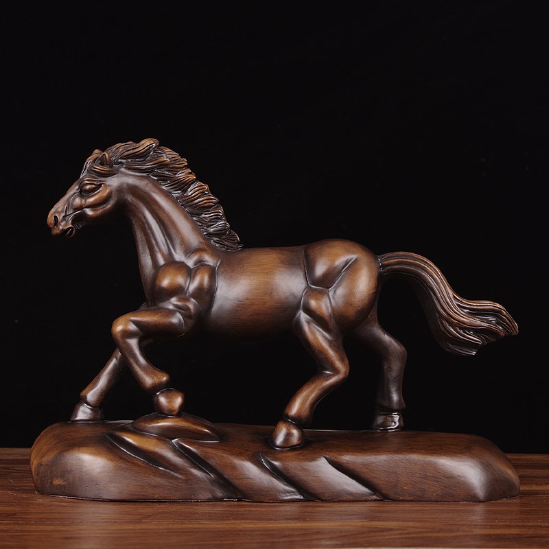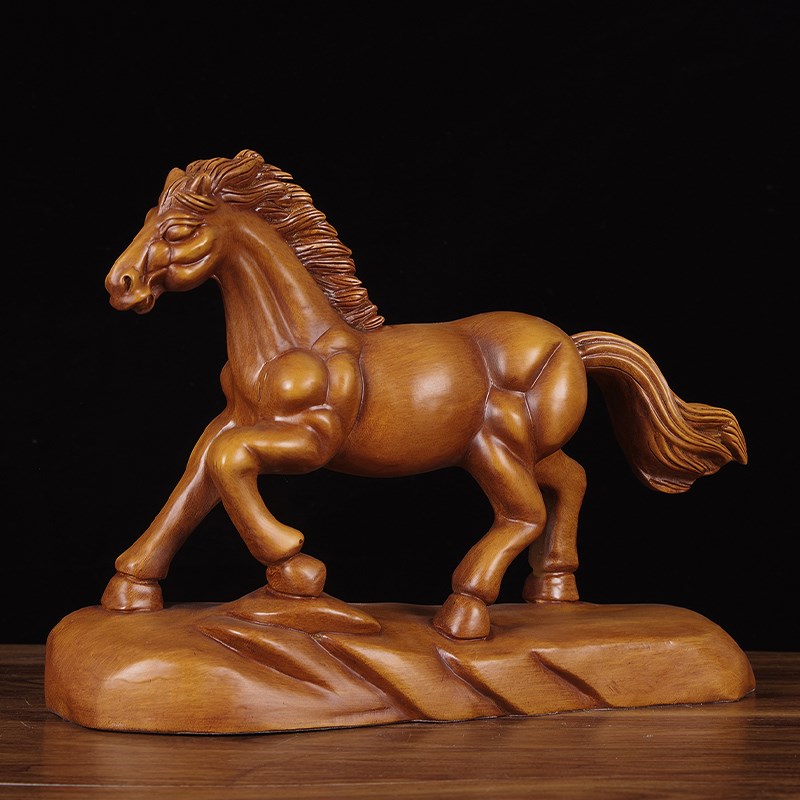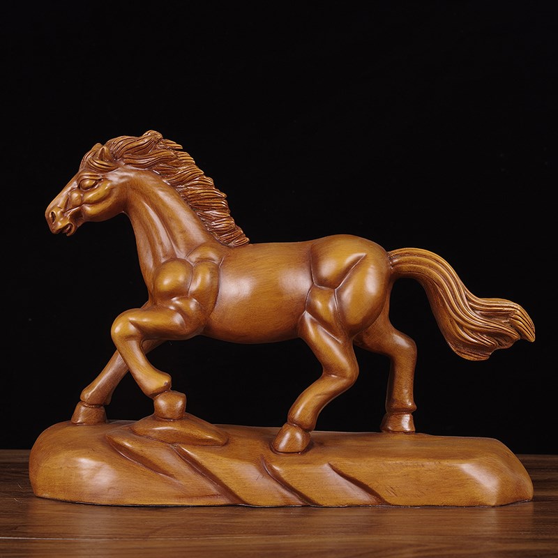 速发实木雕马摆件家居客厅玄关酒柜生肖马新中式办公室马到成功装