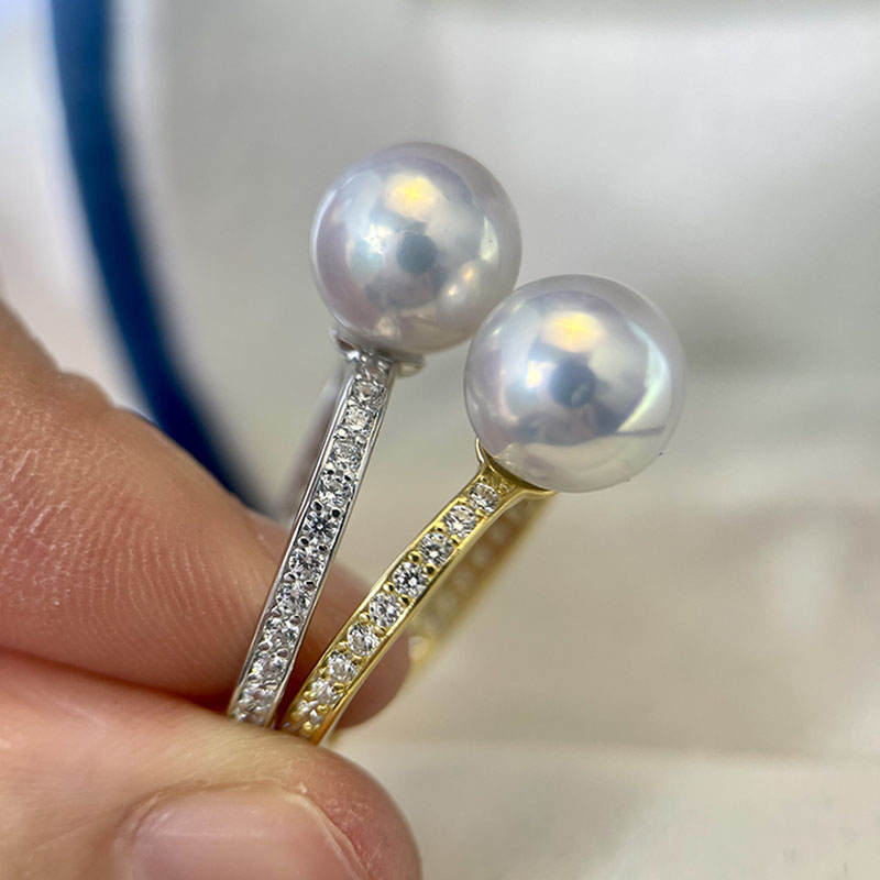 DIY珍珠配件 S925纯银法式精致珍珠戒指空托精工双层电镀气质指环