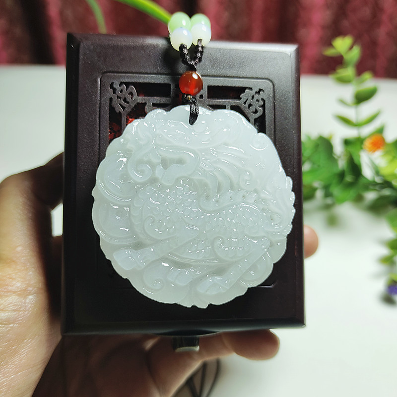 天然青白玉麒麟吊坠貔貅元宝玉佩圆牌男女情侣款挂件项链个性刻字