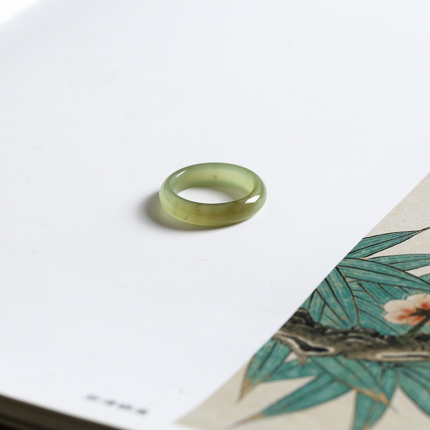 14号戒指 新疆和田玉黄口料糖黄玉窄条泥鳅背素圈指环 1140