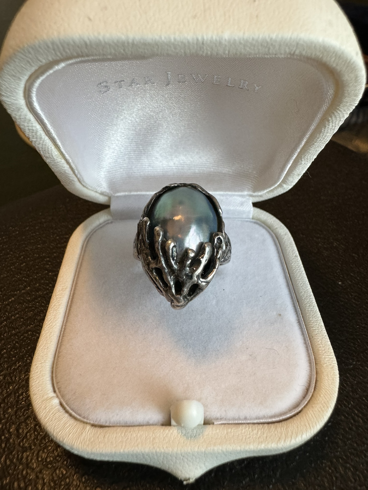 德国PE设计师perli银戒指野兽抽象派古董天然马贝通体925银戒指男