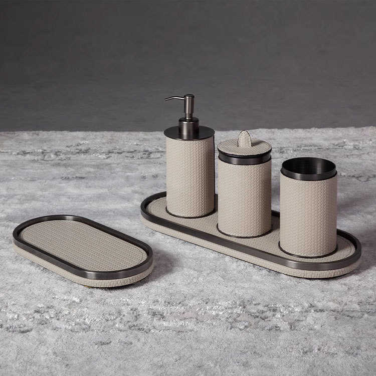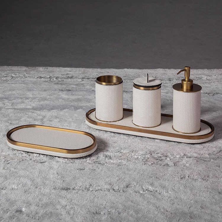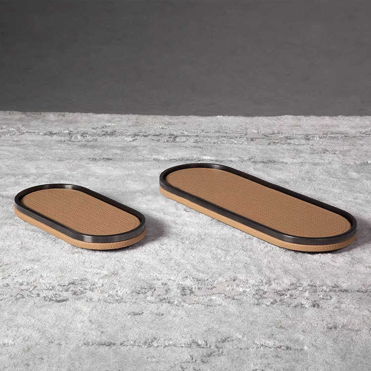 现代简约轻奢皮质金属椭圆托盘收纳摆盘样板房酒店客厅桌面摆件