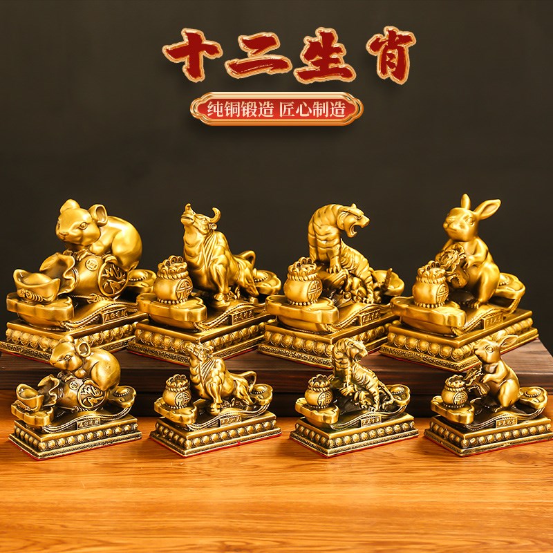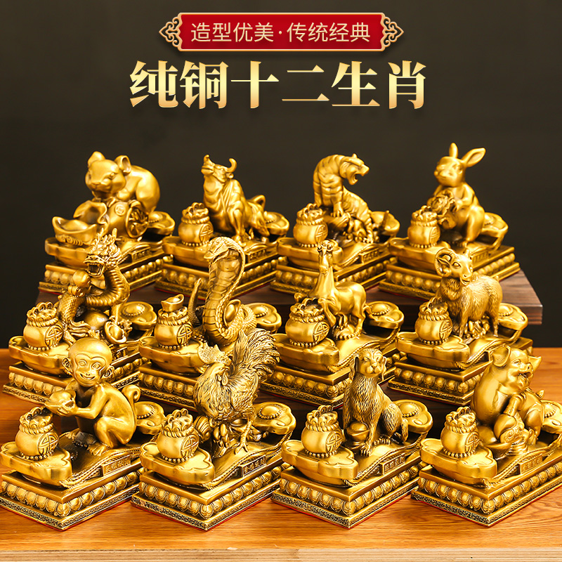 现货速发黄铜十二生肖龙年摆件全套黄铜狗鼠铜牛鸡蛇马虎兔龙羊猴