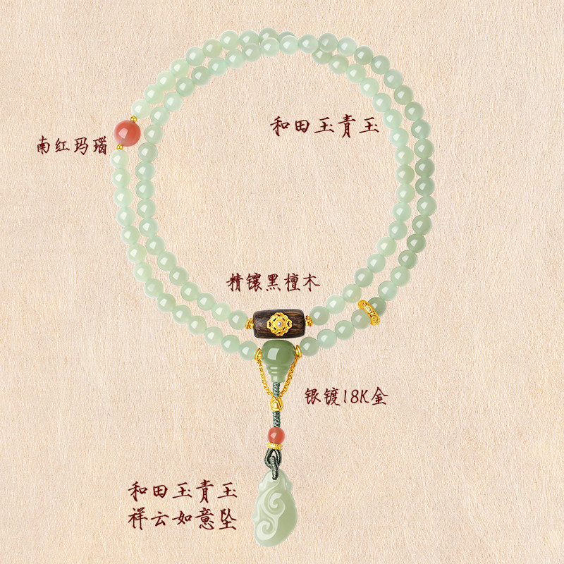 中国风和田玉手链青玉祥云如意六不散人国潮多圈手串事业女吉祥礼