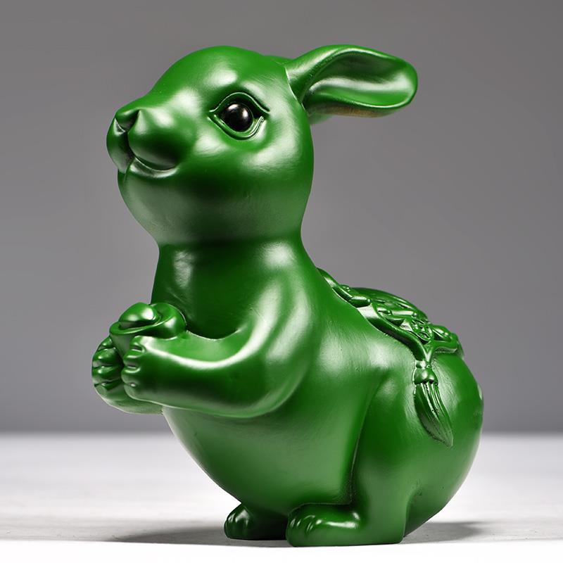 绿色木兔摆件一对木兔工艺品摆件木头兔家居实木质雕刻桌面装饰品