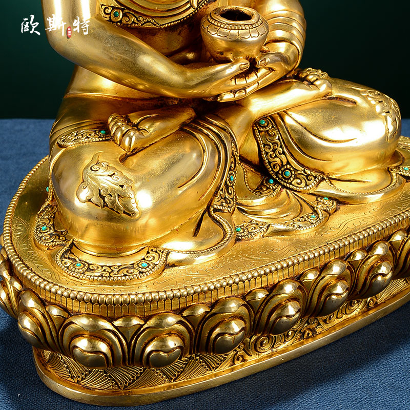 欧斯特 阿弥陀佛中式摆件 尼泊尔手工铜莲花底全鎏金家居玄关铜像