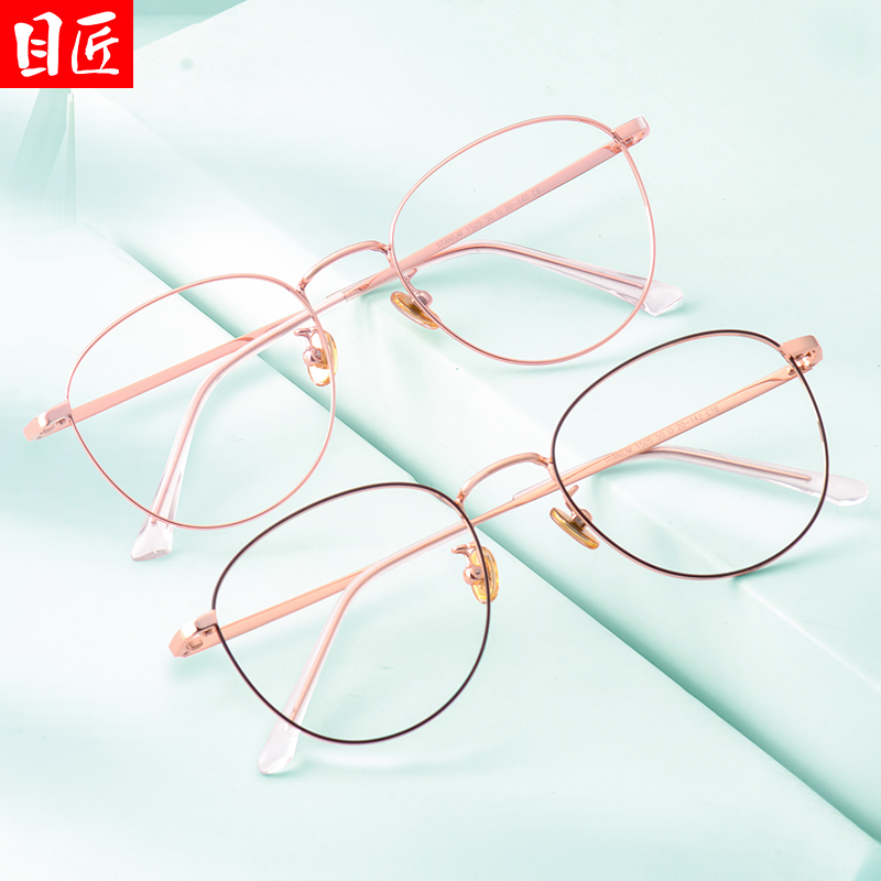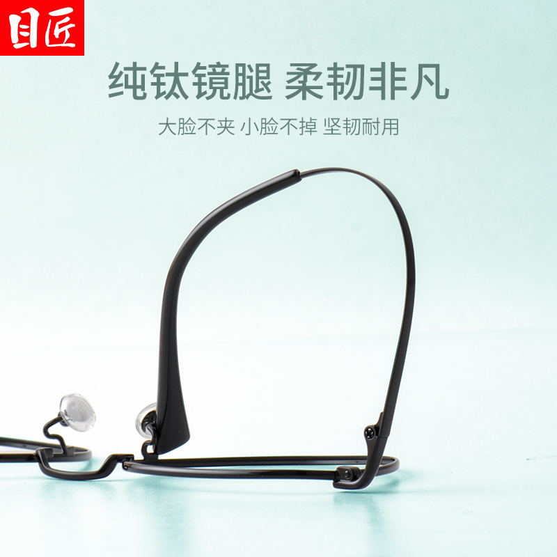 目匠超轻纯钛近视眼镜框男款黑色圆框可配镜片黑框合金钛架镜架女