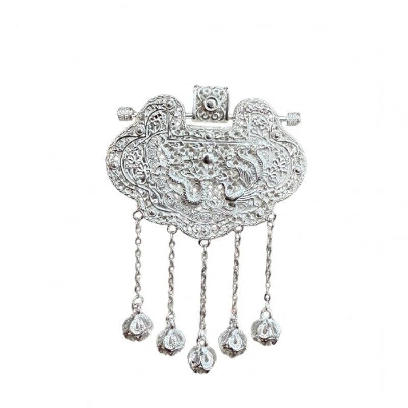 足银999天子门生银锁吊坠 中国风锁包编织龙凤锁项链时尚百搭款