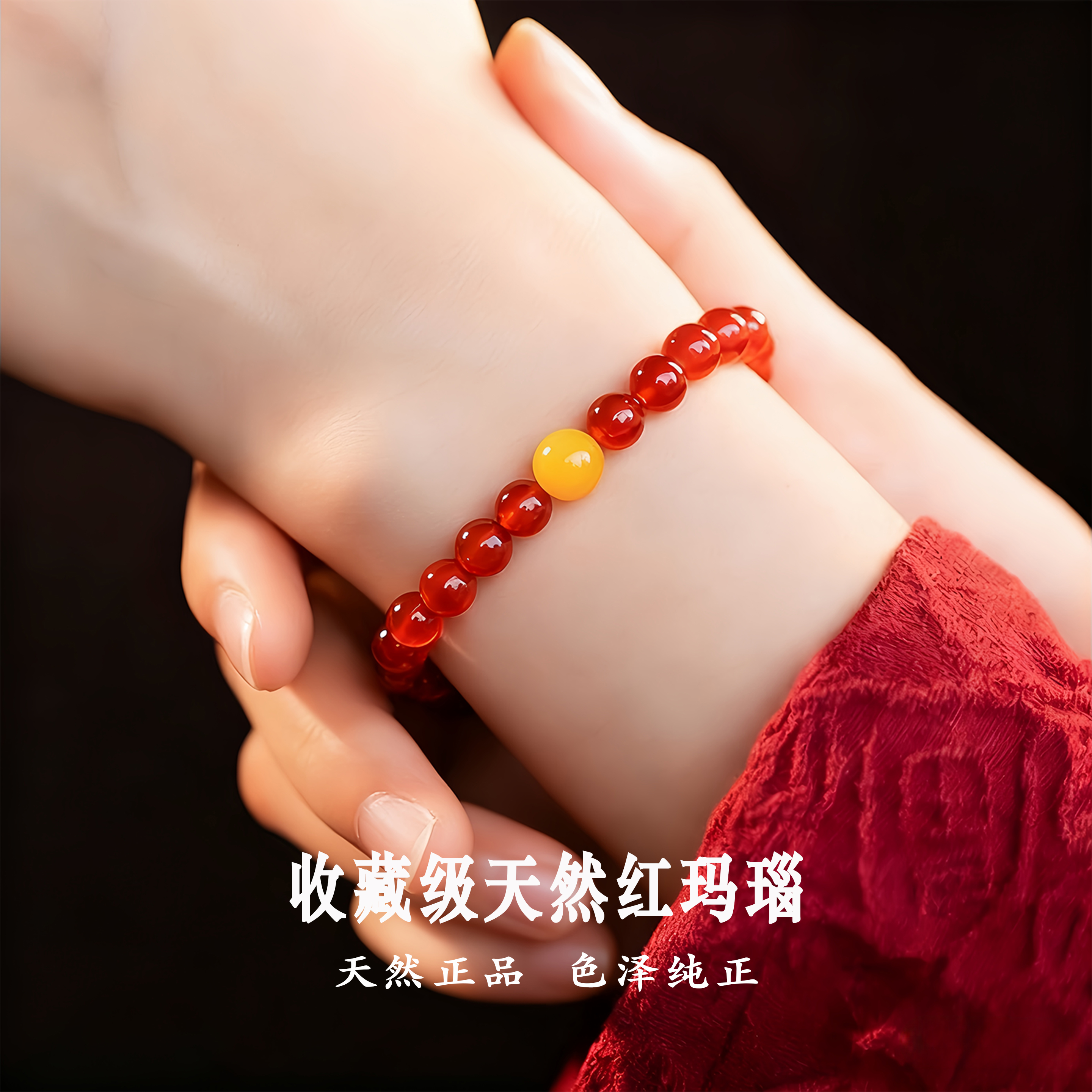 收藏级正品红玛瑙手串女款天然手链红玉髓红色串珠生日礼物送妈妈
