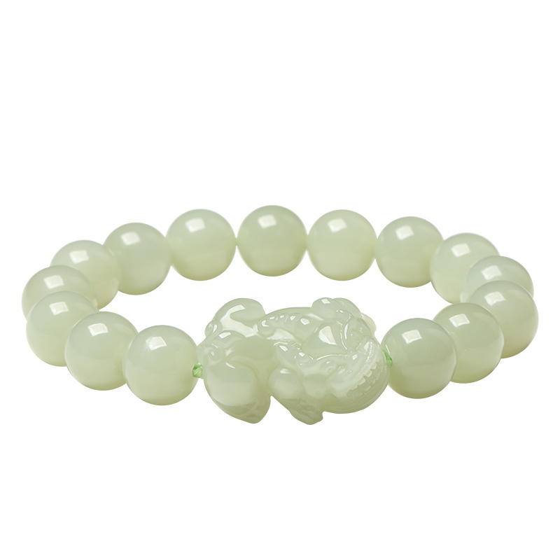 正品招财和田玉霸王貔貅手链手串男士玉石转运情侣款圆珠子佛珠女