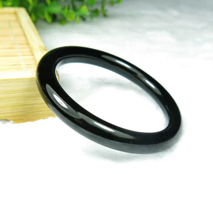 金怡福正品新疆平安墨和田黑青手镯女款天然细圆条玉镯子保佑复古