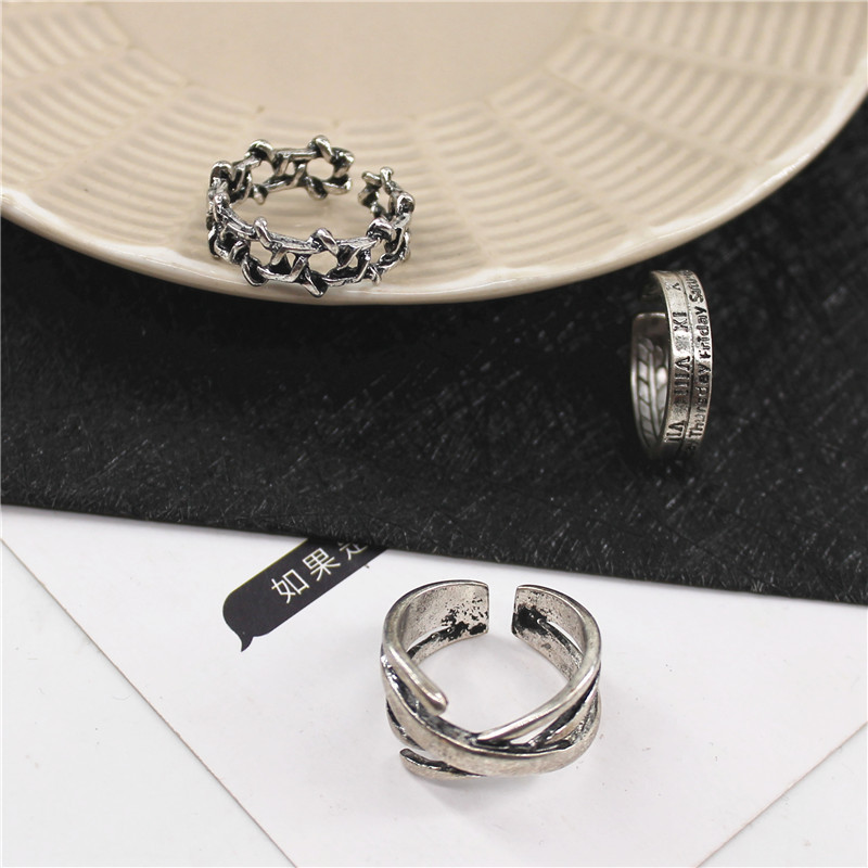 复古简约做旧套装戒指女嘻哈ins男潮时尚个性小众设计开口食指环