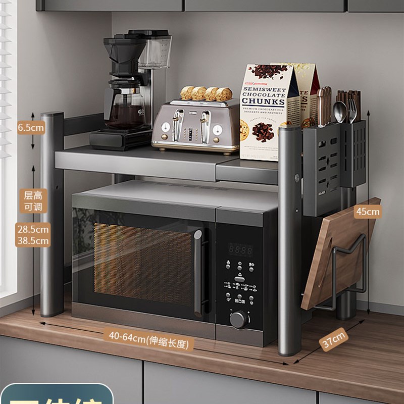 厨房微波炉架f子置物架多功能电饭煲一体双层台面烤箱专用可伸缩
