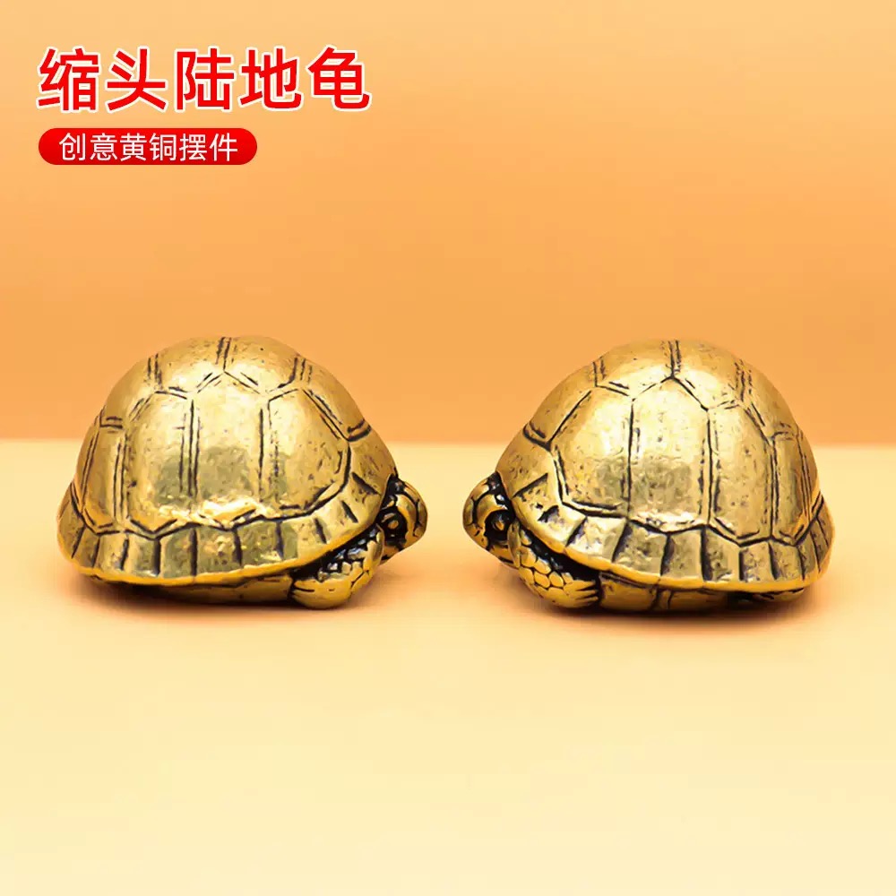 纯黄铜钱币乌龟摆件复古霸下茶宠吉祥动物家用装饰古风国潮小礼品