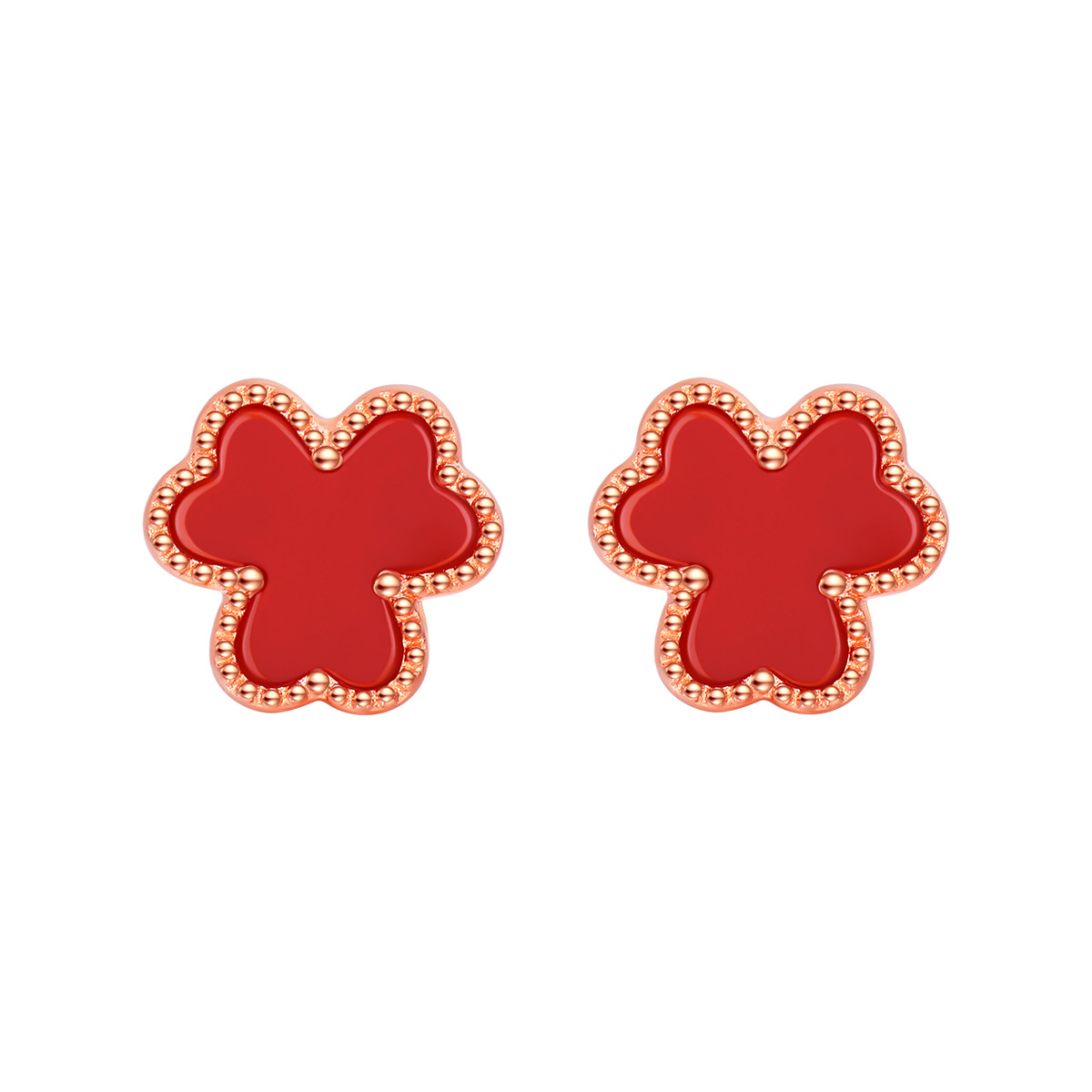 诺依S925纯银五花三叶草手链女百搭红玛瑙母亲节礼物送妈妈婆婆