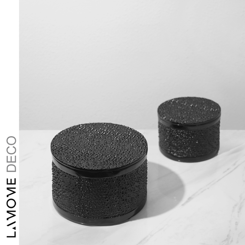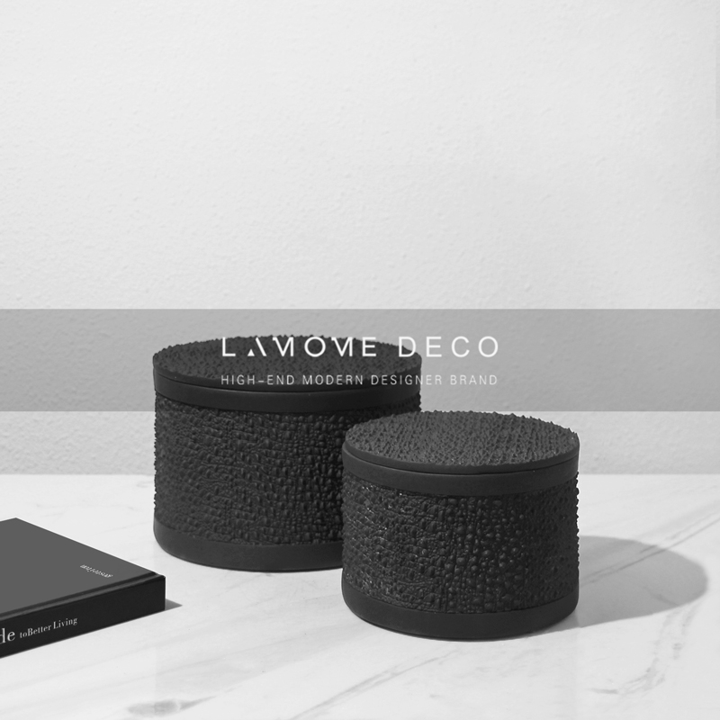 简约现代黑色树脂圆形首饰盒创意刺纹收纳盒卧室客V厅桌面饰品摆