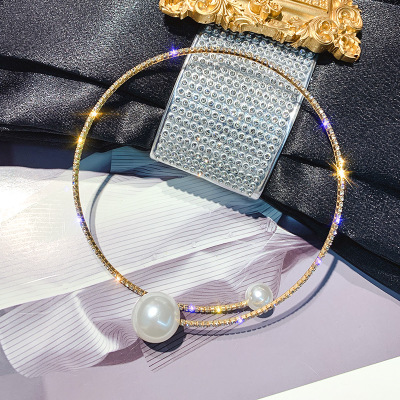 满钻大小珍珠开口项圈女日韩网红短款项链手链choker颈带锁骨链女