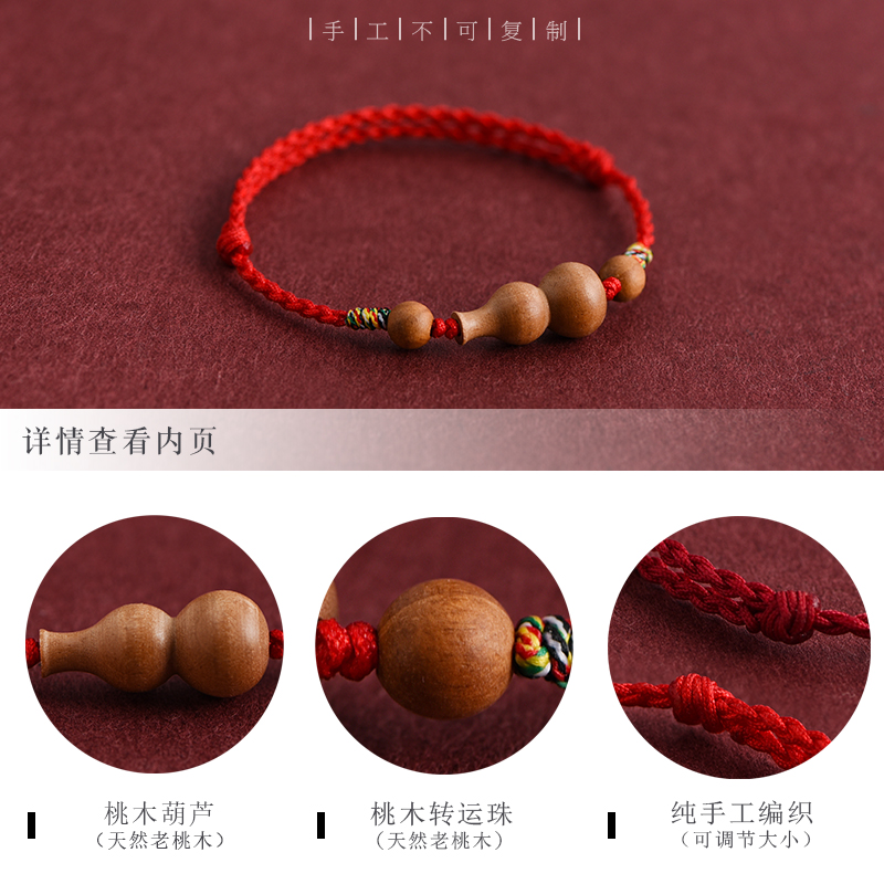 普陀山天然桃木编织红绳手链儿童宝宝平安健康防惊吓红手绳护身符