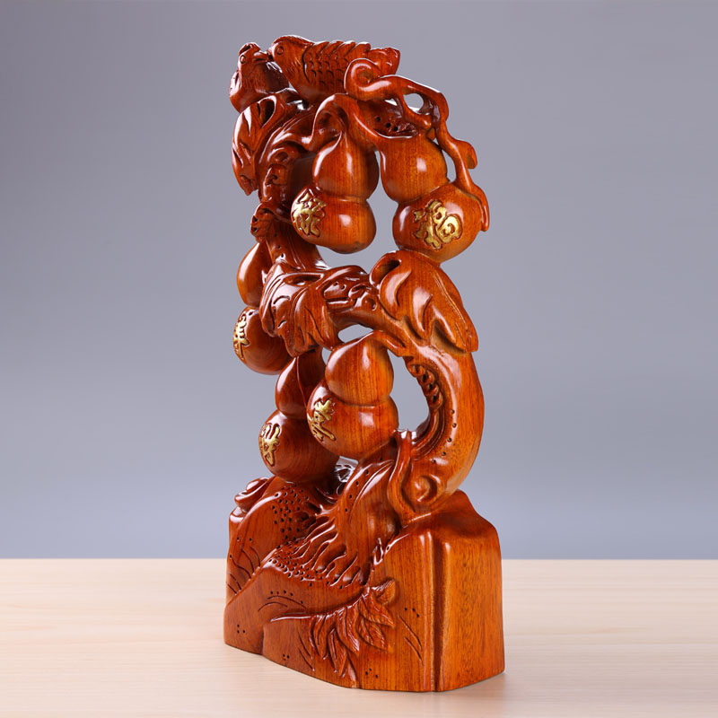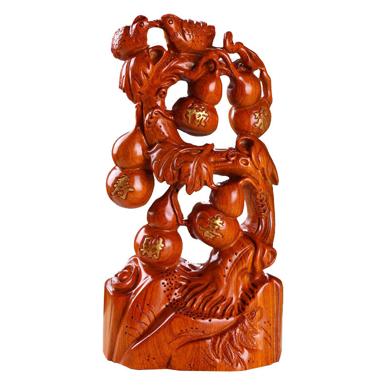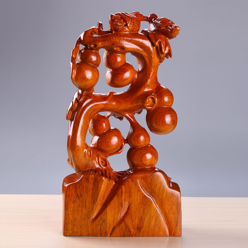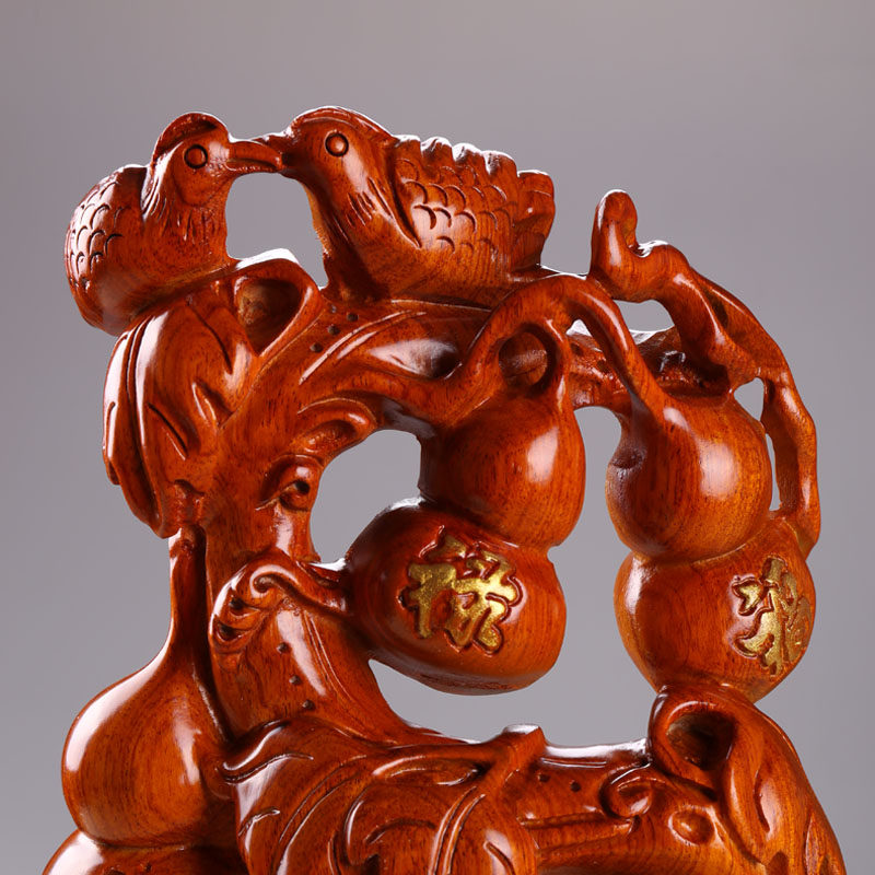 黄花梨五福临门开业礼物葫芦摆件大号实木家居装饰红木工艺品礼品