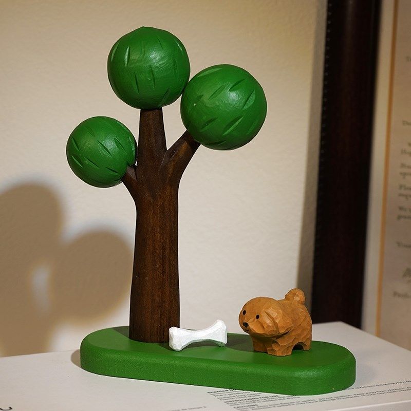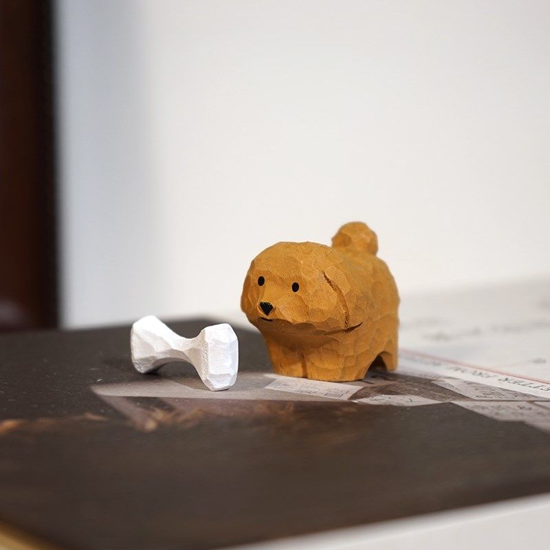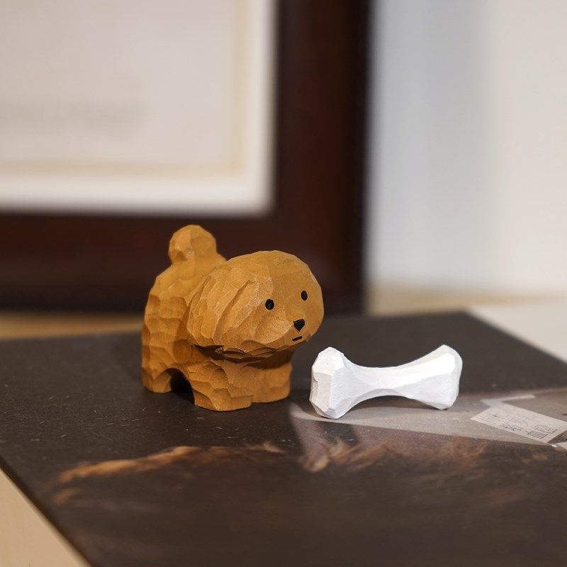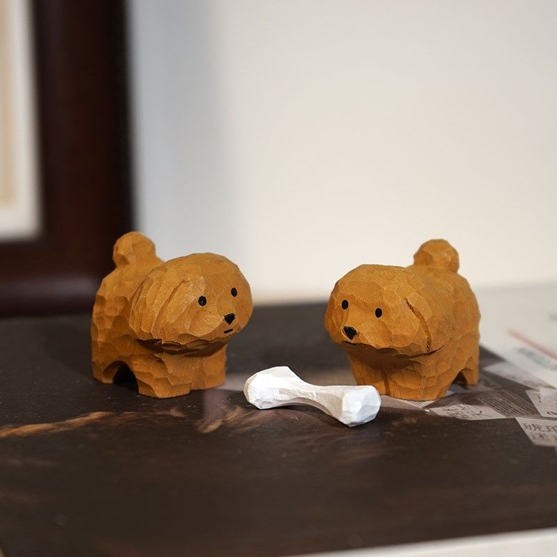 中大奖的泰迪手工木雕小摆件迷你可爱动物狗狗办公桌面装饰品