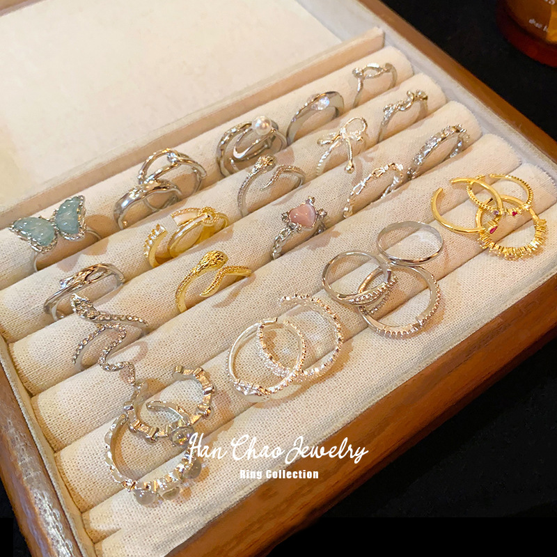 冷淡风高级感锆石镶钻开口戒指女小众时尚食指戒网红百搭手饰品