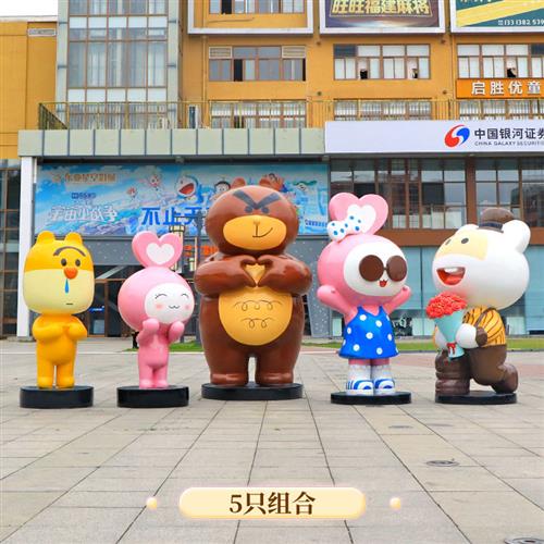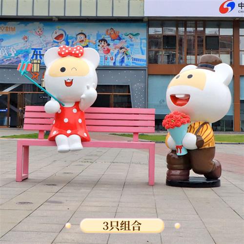 户外卡通波士熊和笨笨鼠雕塑玻璃钢商场网红打卡拍照大型装饰摆件