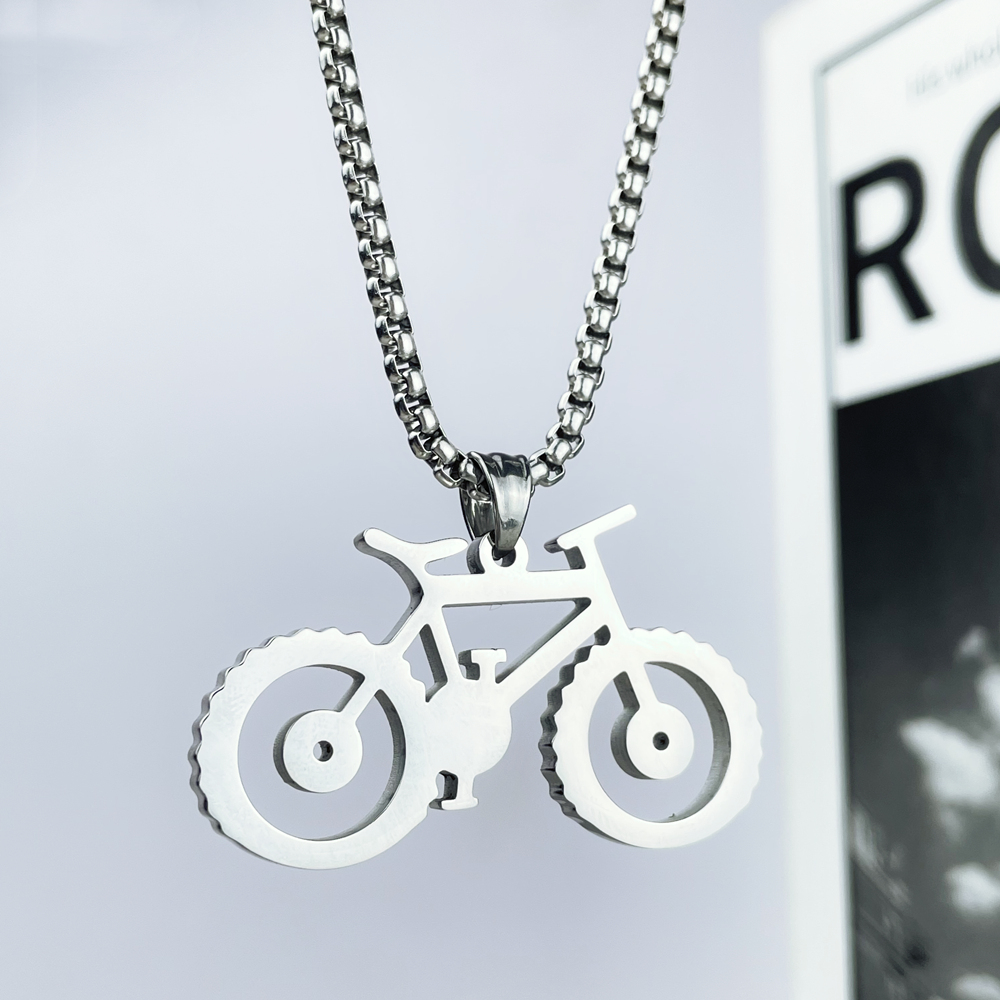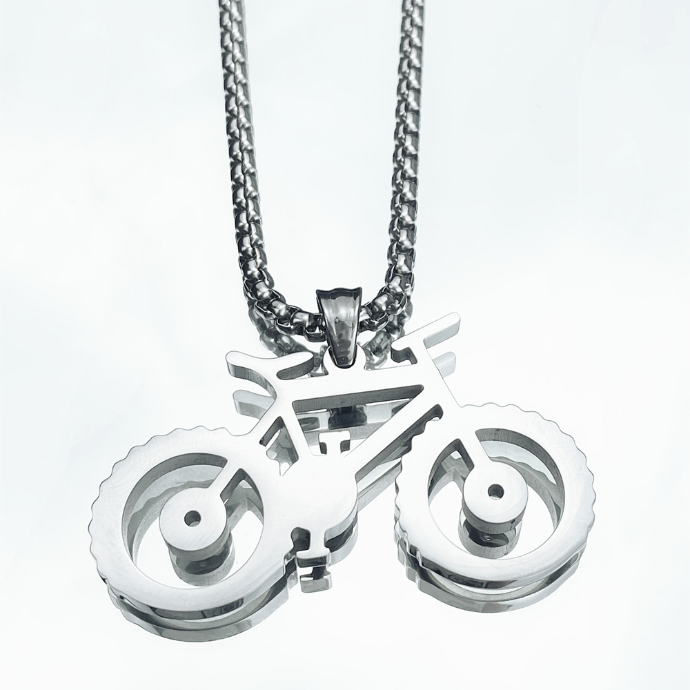 POYO小众设计运动自行车项链个性简约嘻哈潮男女钛钢吊坠学生饰品