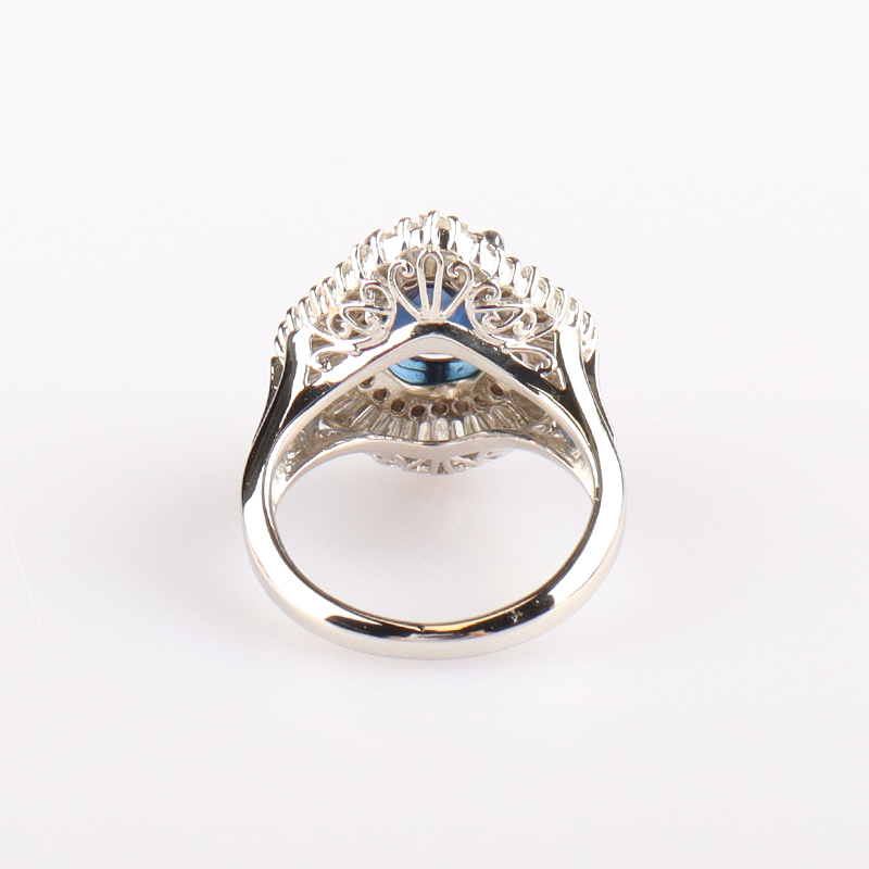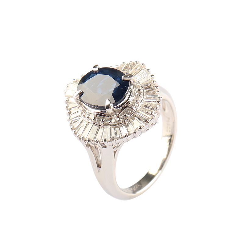 【自营】中古95新日本进口椭圆形切工钻石铂金900蓝宝石48号戒指