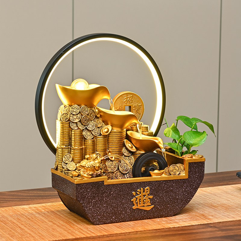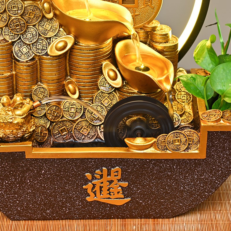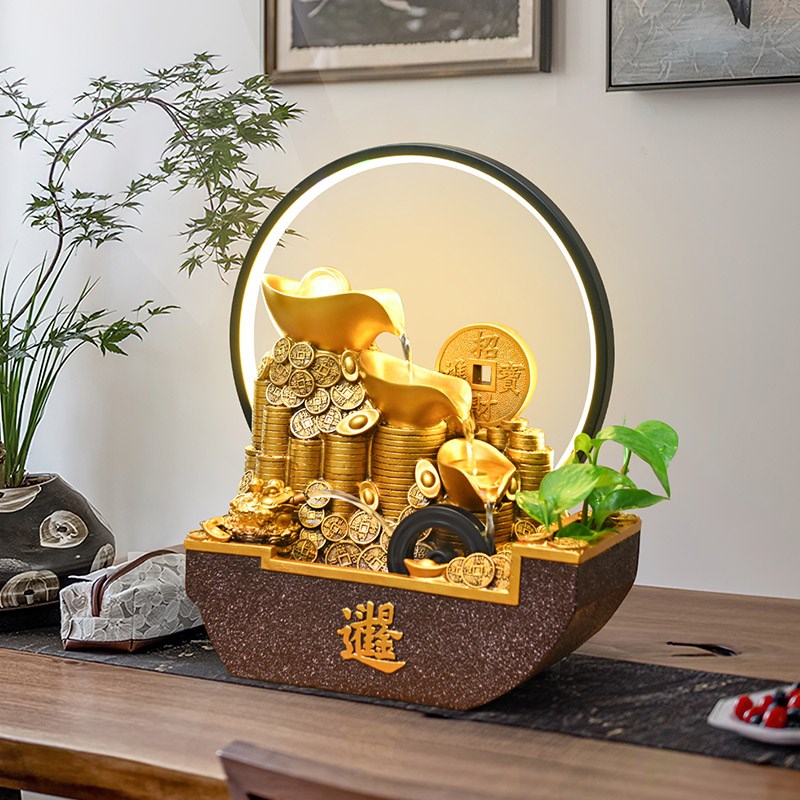新中式招财d流水摆件循环水聚宝盆客厅玄关风水轮生财开 业乔