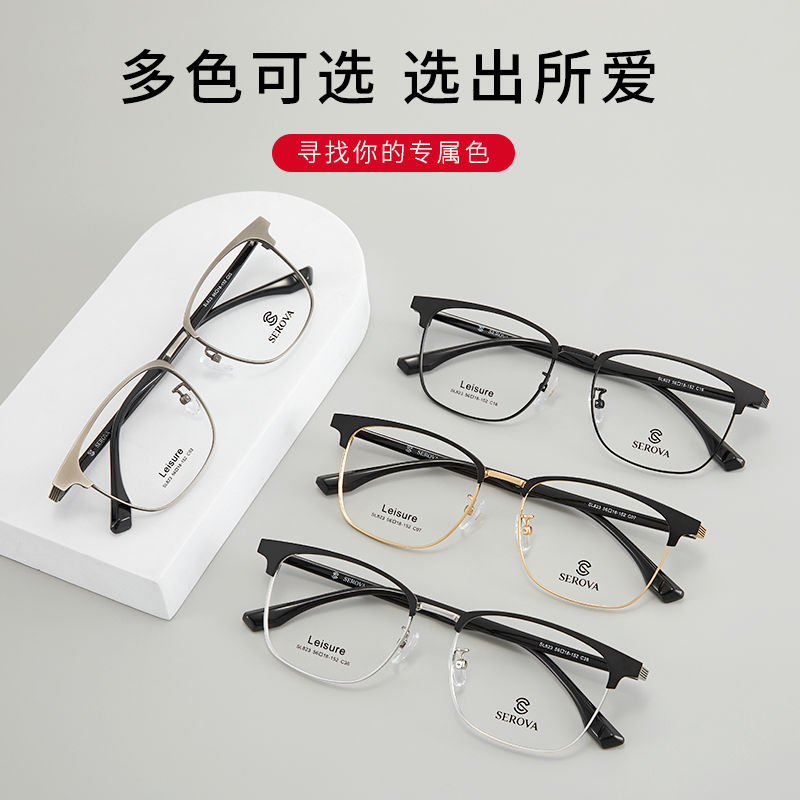 预售施洛华眉毛框宽边大脸近视眼镜方框超轻质感复古经典款SL823
